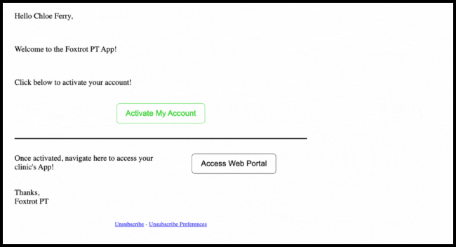 1.) Once you have been added to the system by the site Administrator of your provider portal, you will receive an activation email from the system.