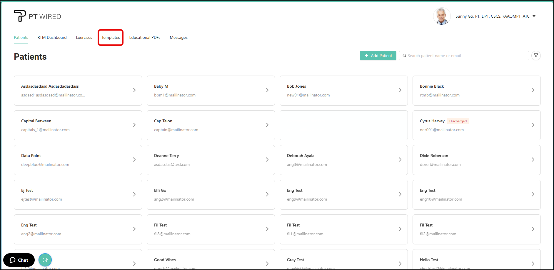 1.) Log in to the system as an Admin or Therapist and click the "Templates" tab on the dashboard.