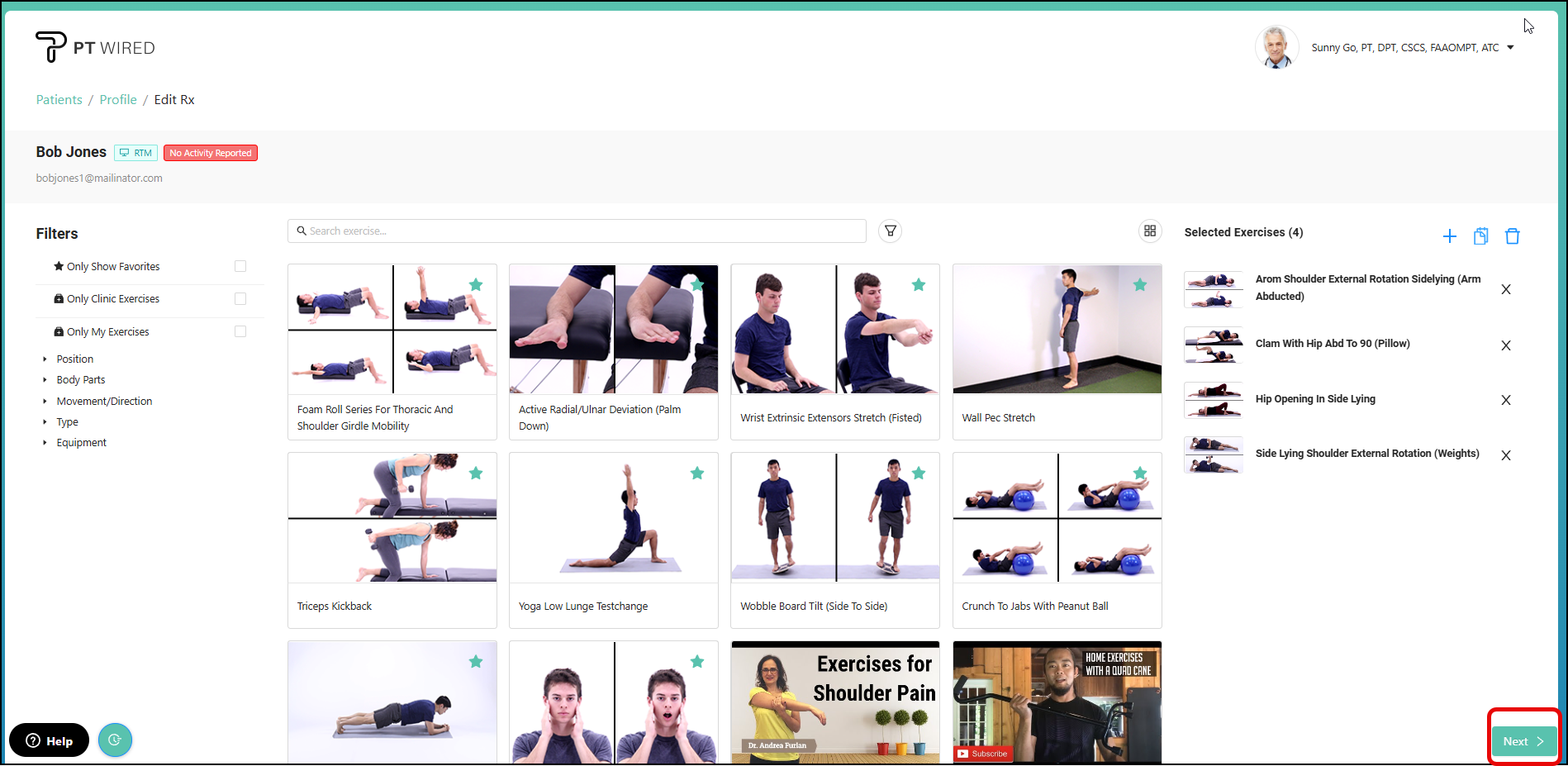 4.) Once you've selected the exercises to be included in the template, click the "Next" button at the bottom right of the page.