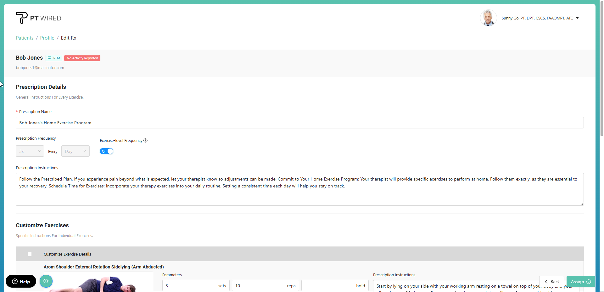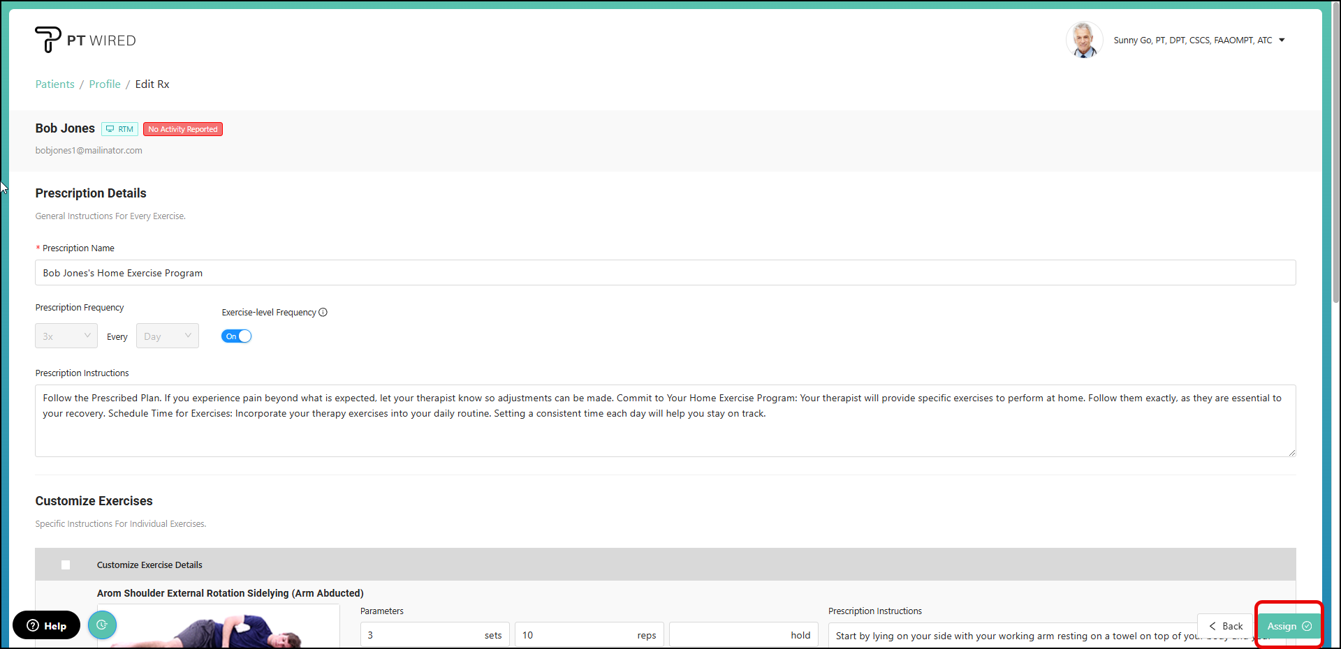 10.) Once you're satisfied with the prescription details, click the "Assign" button at the bottom right of the page.