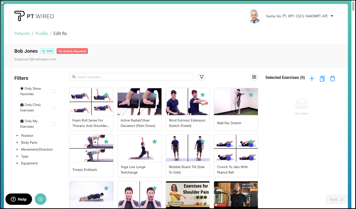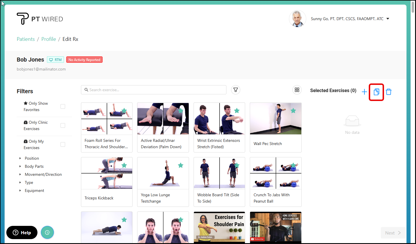 Here's how you can use an Exercise Template when creating a patient prescription: