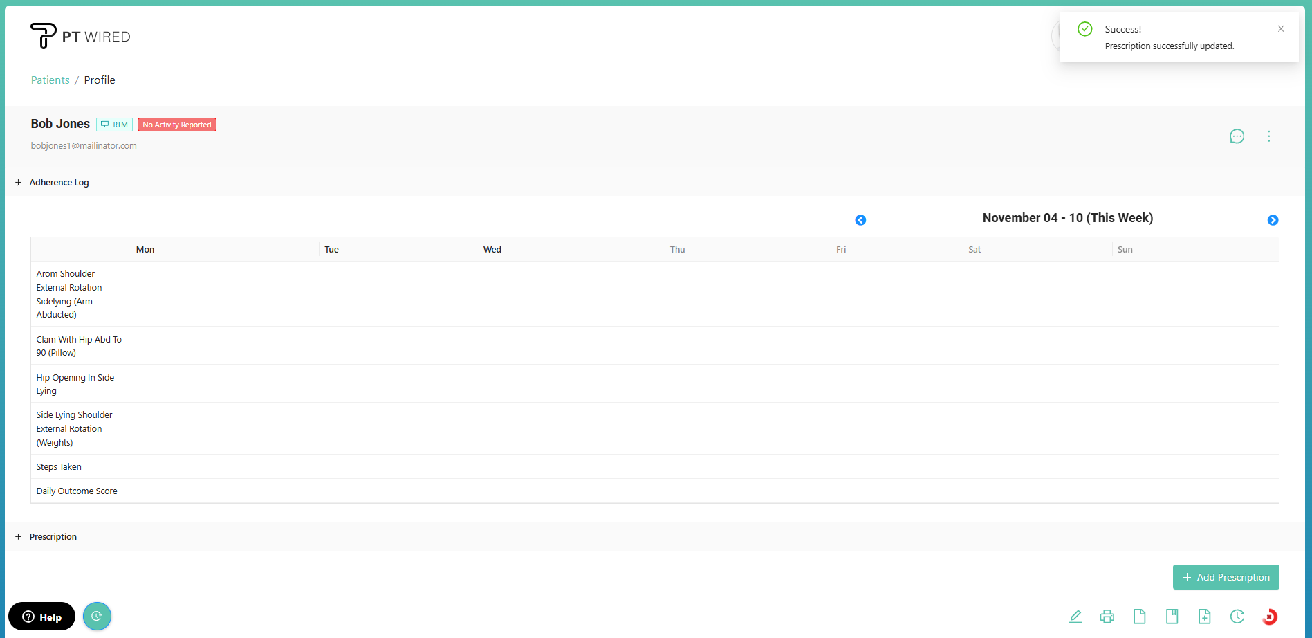 11.) A Success! Prescription successfully updated pop-up will appear at the top right of the page once the template has been successfully added to the prescription.