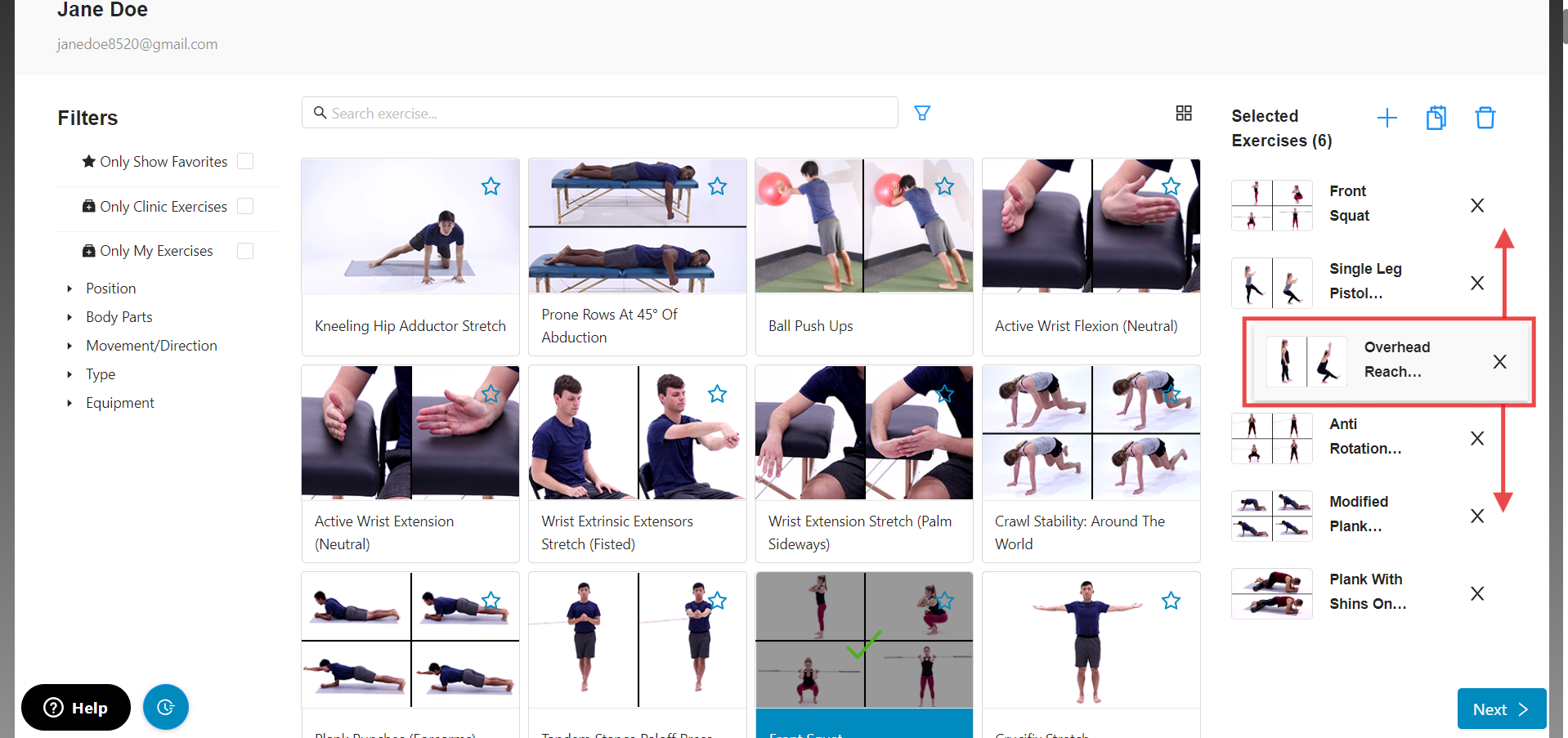 5.) You're now able to make any changes you desire, like adding or removing exercises from the list, and replacing or rearranging the exercises in the Selected Exercises bucket.