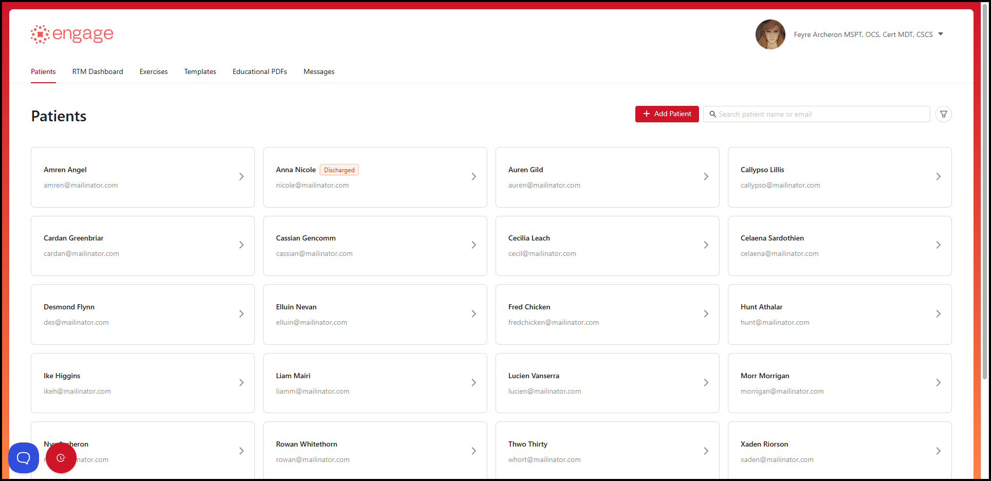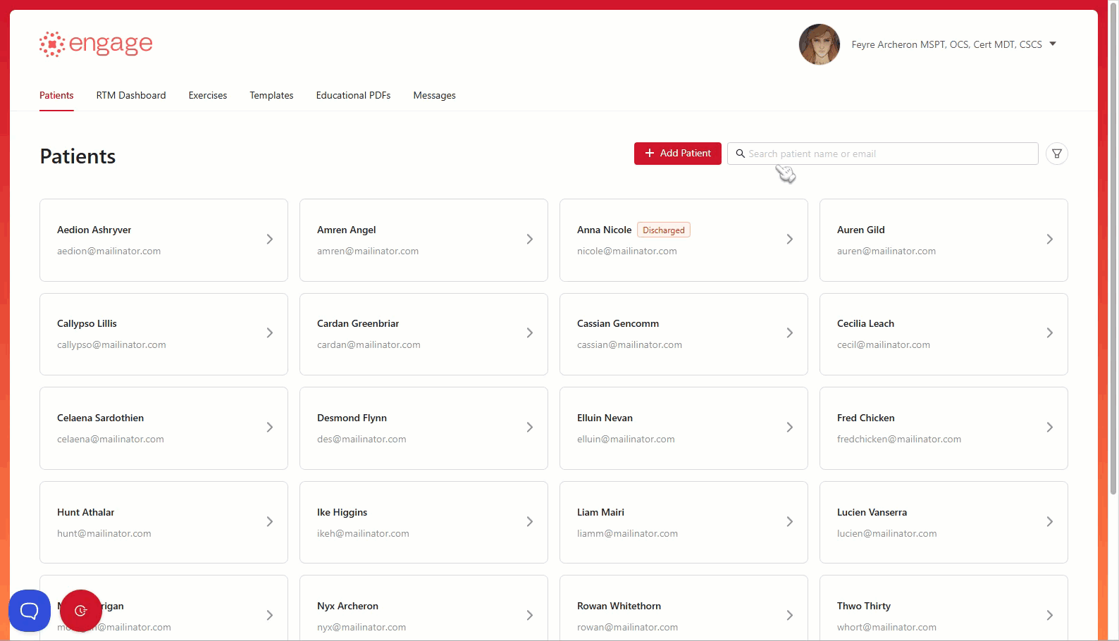 2.) Search the patient whose profile you want to edit by typing the patient's name or email address in the Search Bar. Click the patient card to go into the patient's profile page.