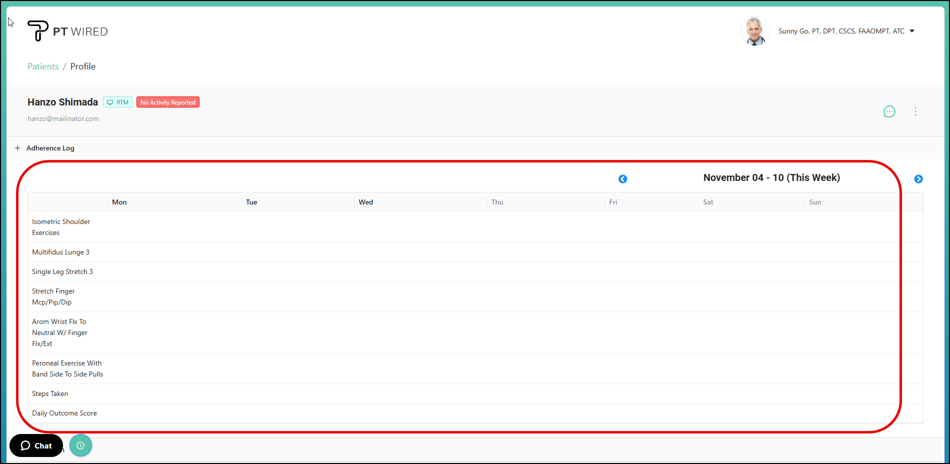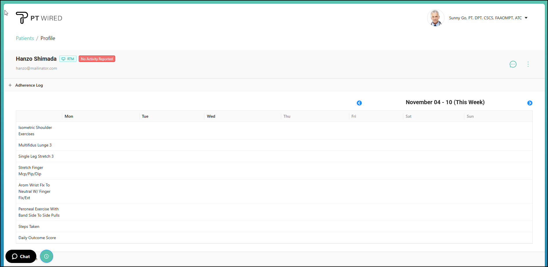 Patient adherence is a critical factor in the success of any treatment plan. The Adherence Log provides a clear, data-driven look at how a patient is engaging with their prescription or home exercise program. By reviewing this log, providers can quickly assess compliance, identify potential challenges, and have more informed conversations with your patients to help them stay on track and engaged.