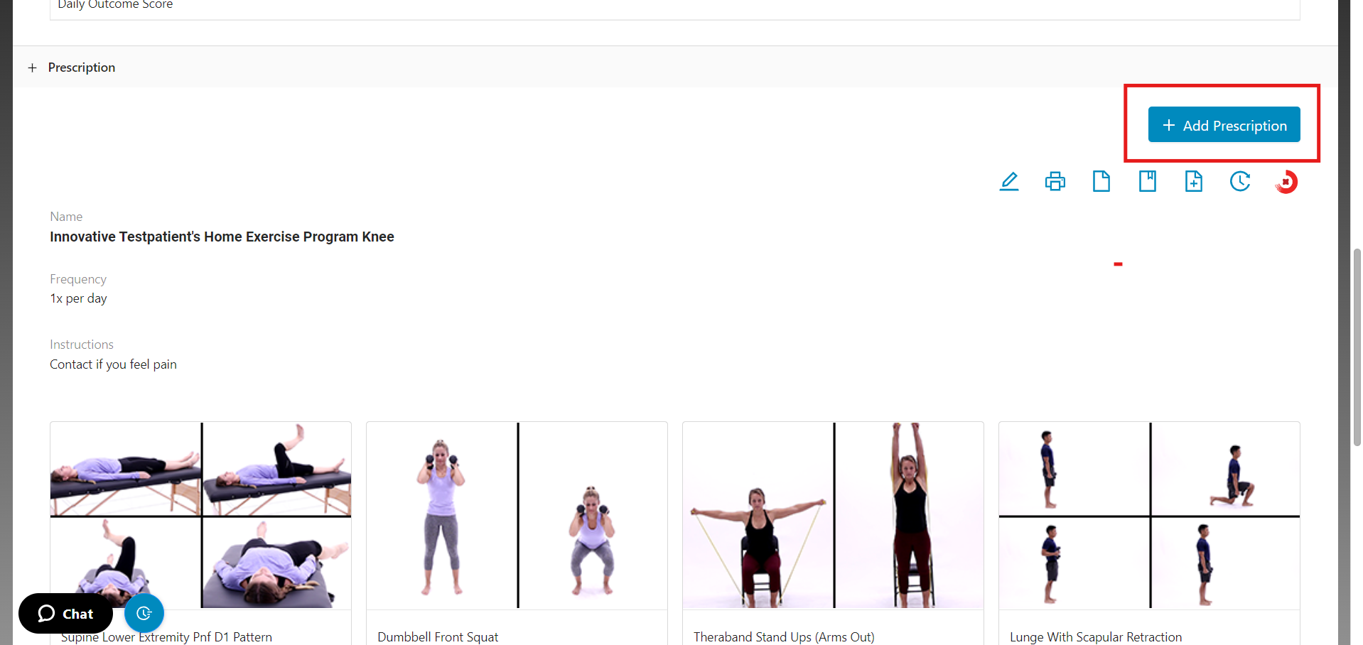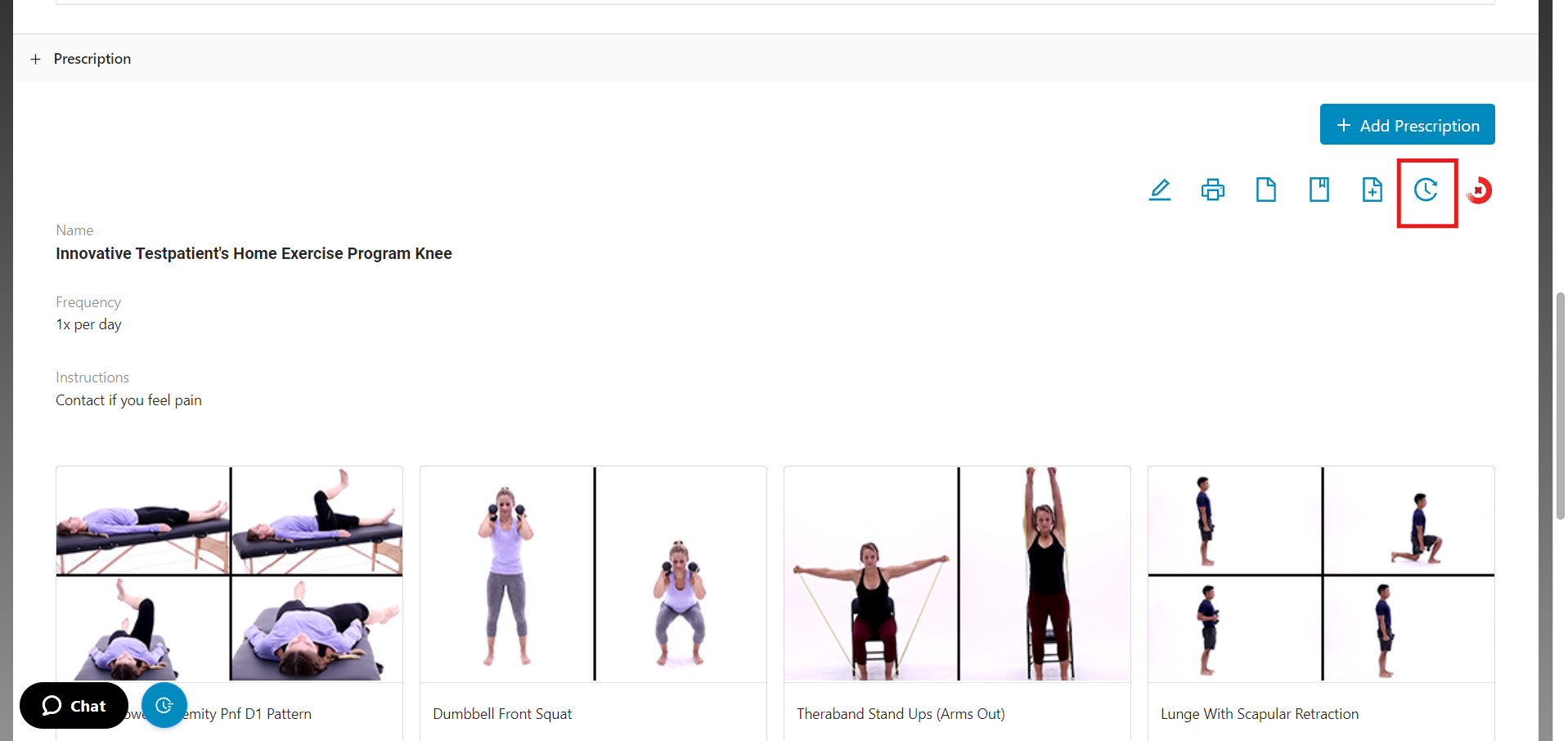 2. Once in the patient's profile, navigate to the prescription and click on the 'View Prescription History' icon.