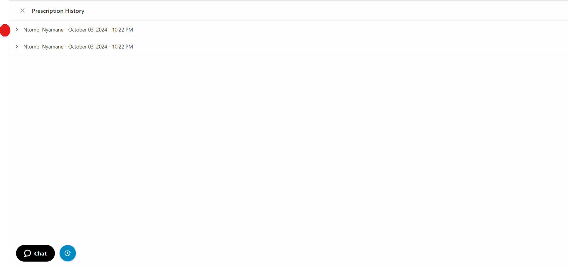 4. The prescription history will open, allowing you to select a specific entry to view more details.