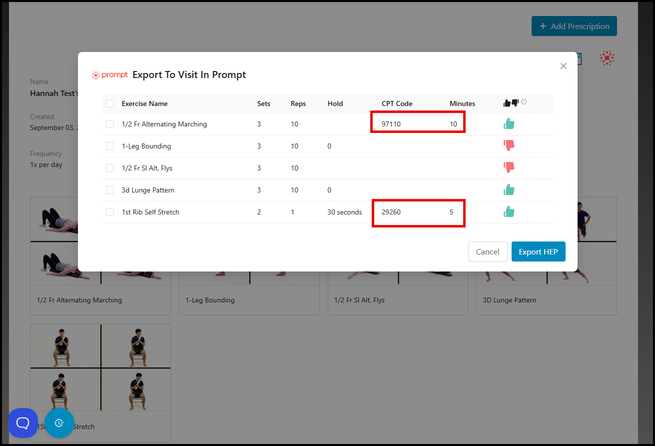 - If you have Multiple Prescriptions enabled, you'll find the "Export HEP to Prompt" button in each individual prescription under the "Prescription Details" tab.