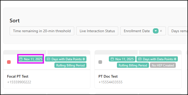 - Save Sort Inputs: The sort options on the RTM Dashboard patient list (i.e. Call Status, Days Remaining in 30-day billing period, etc.) are saved when the provider navigates away from the RTM Dashboard.