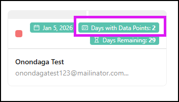 - In the List view, The new columns “Days with Data Points” and “Days Remaining” can be sorted by clicking the column headers to toggle between ascending and descending order.