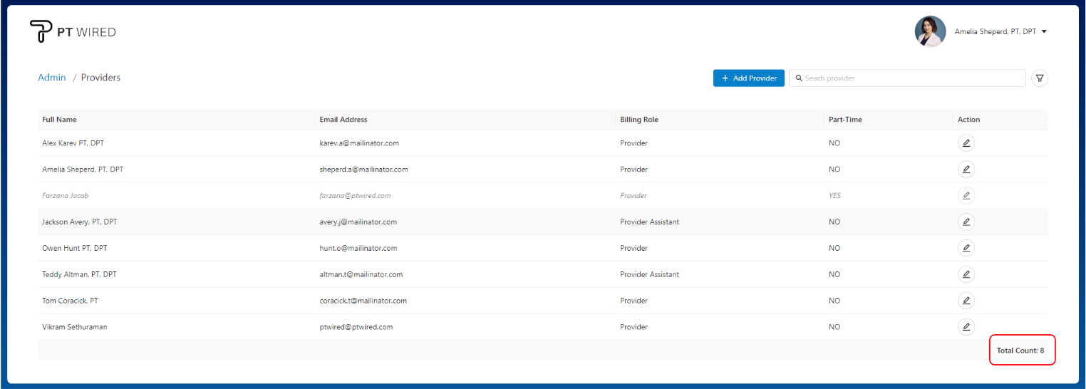 - You'll be directed to a page where the total number of providers will be listed, and the Total Count is displayed on the bottom right of the table.