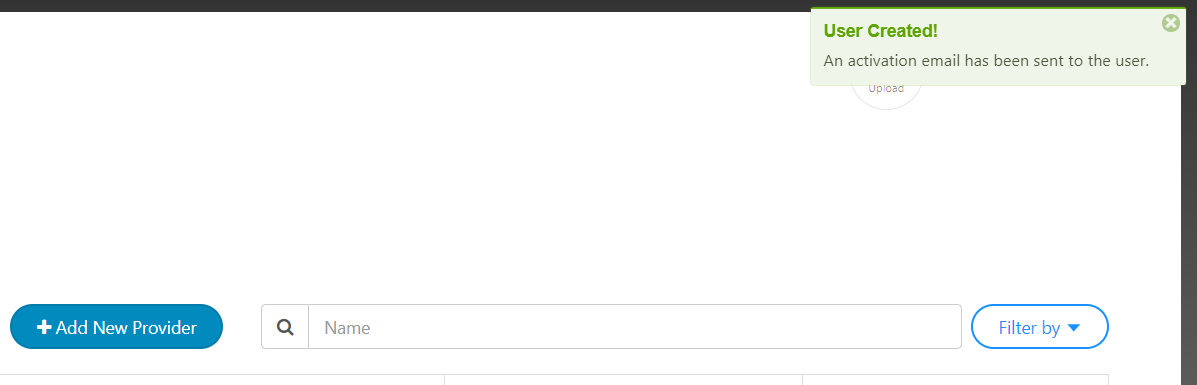 4.) A User Created! pop-up will appear at the top right of the screen to indicate that you've successfully added a new provider.