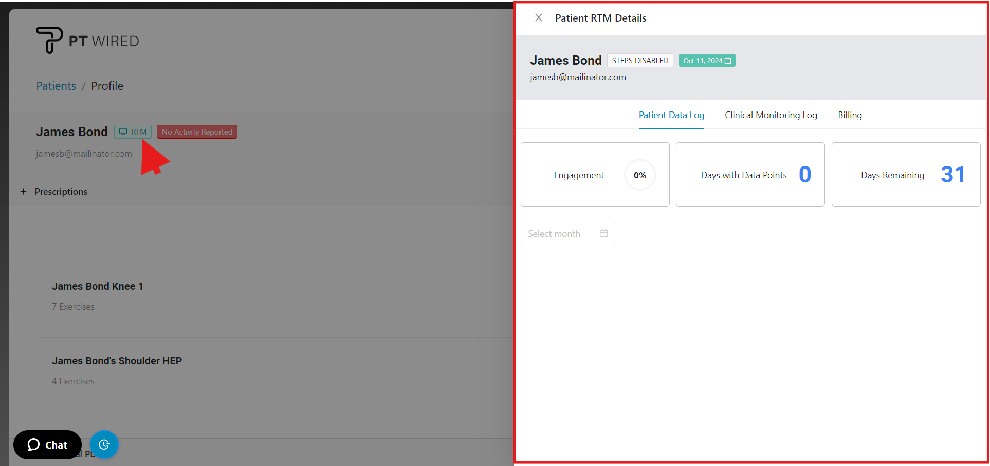 5. Click on the 'RTM' label to open the Patient RTM Details tray.