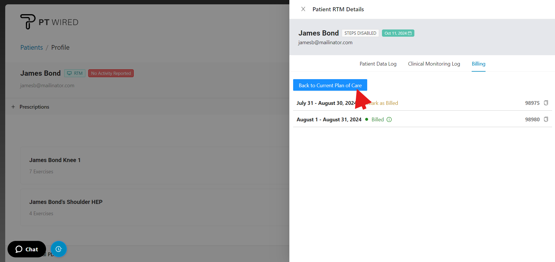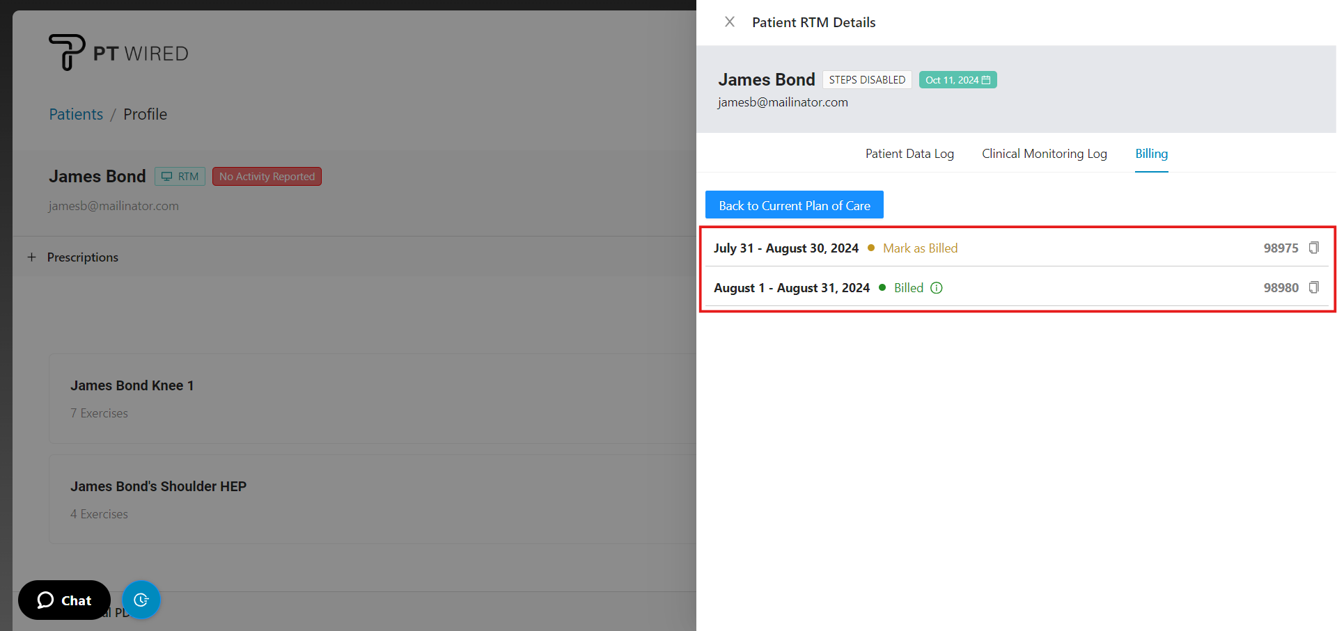 Providers have the ability to review and bill previously unbilled & billed RTM codes from past plans of care. This feature ensures the retention of RTM history and provides access to historical RTM data even after a patient has been discharged.