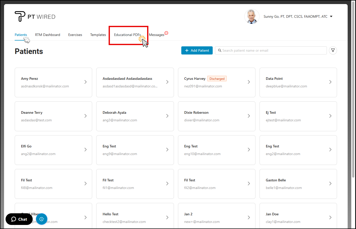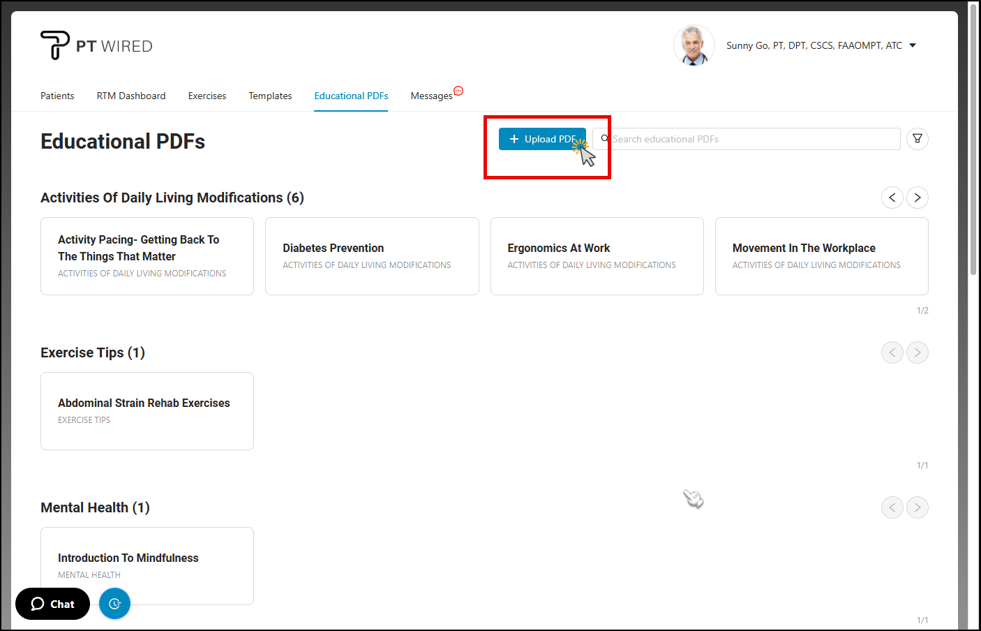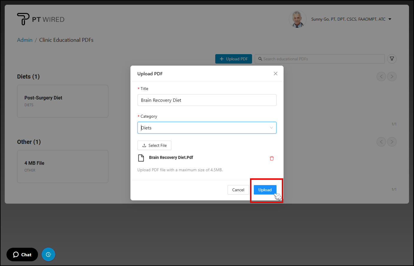 Uploading a Clinic Educational PDF via the main 'Educational PDFs' Tab