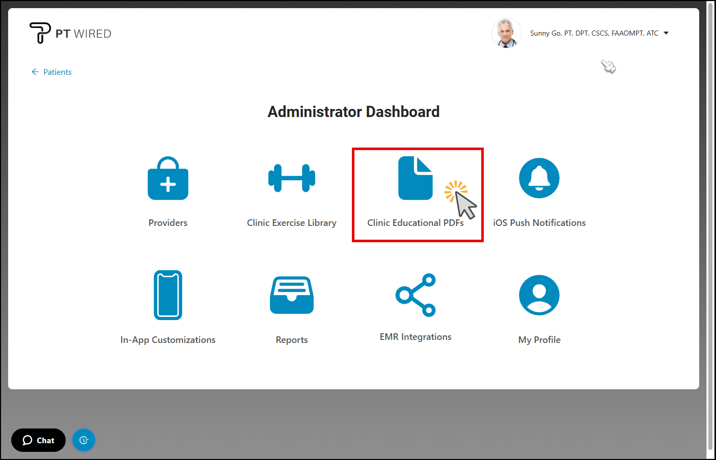 1. From the Group admin dashboard, click the 'Clinic Educational PDFs' button.