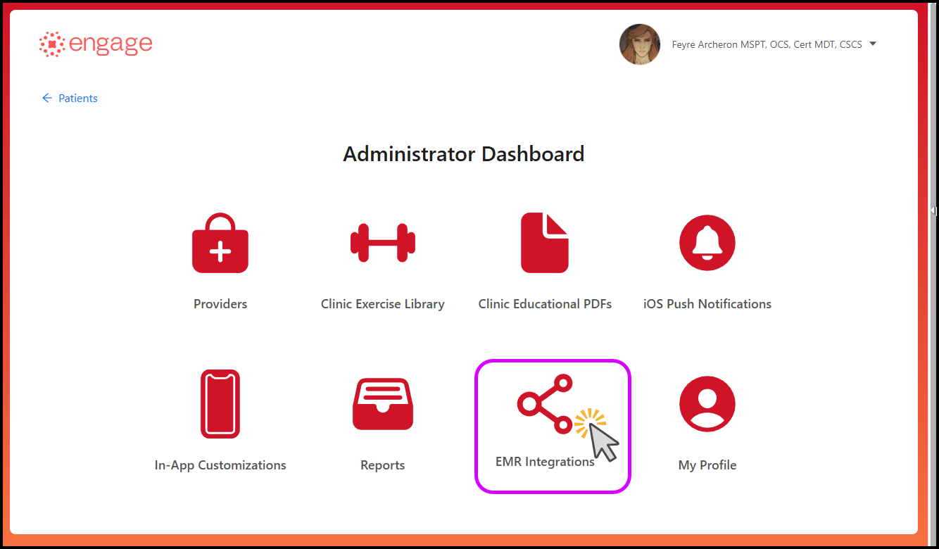 2.) In the Administrator Dashboard, click the 'EMR Integrations' card.