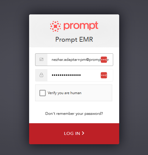 1.) Open Prompt EMR and log in using your Prompt credentials.