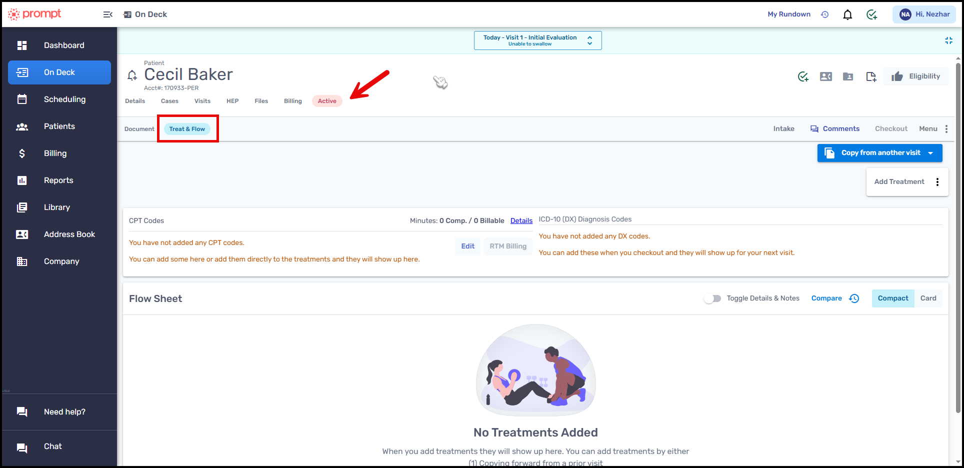 13.) From here, navigate to the 'Active' tab and select 'Treat & Flow'