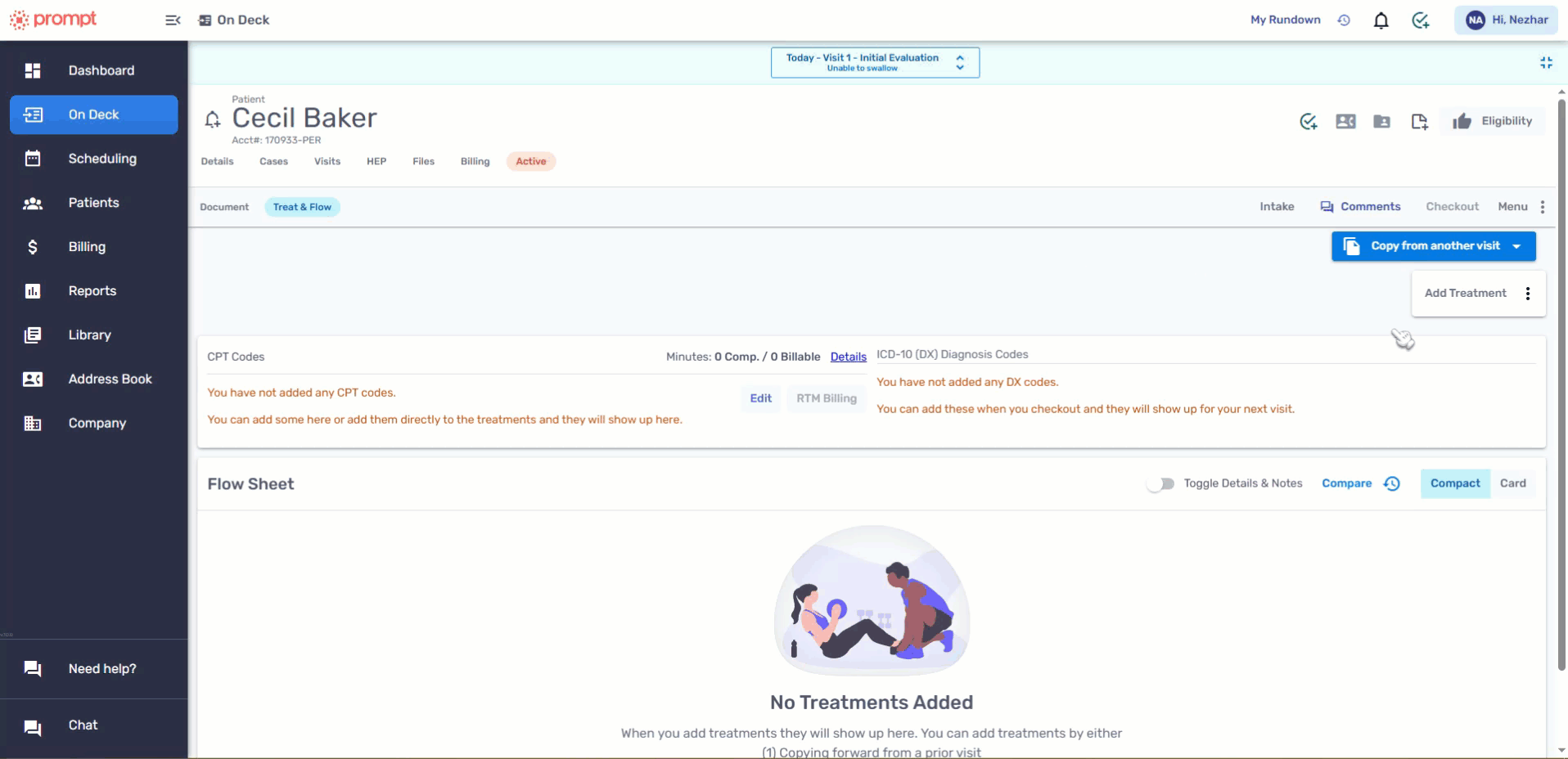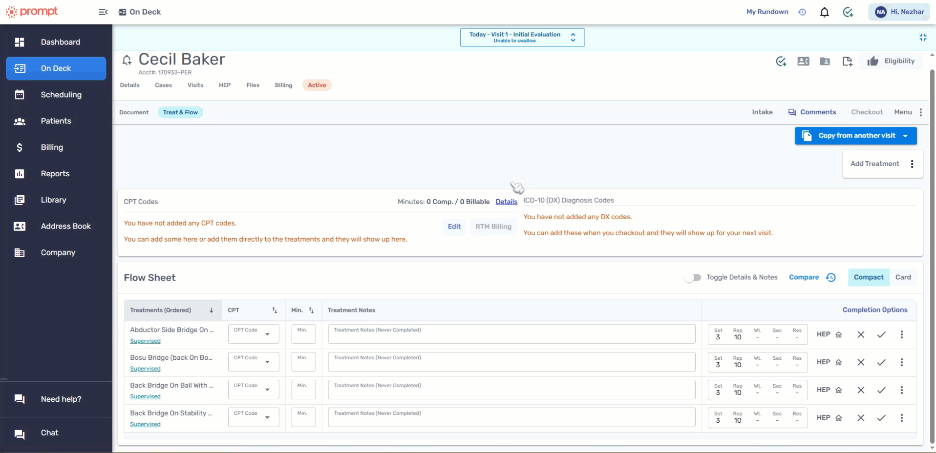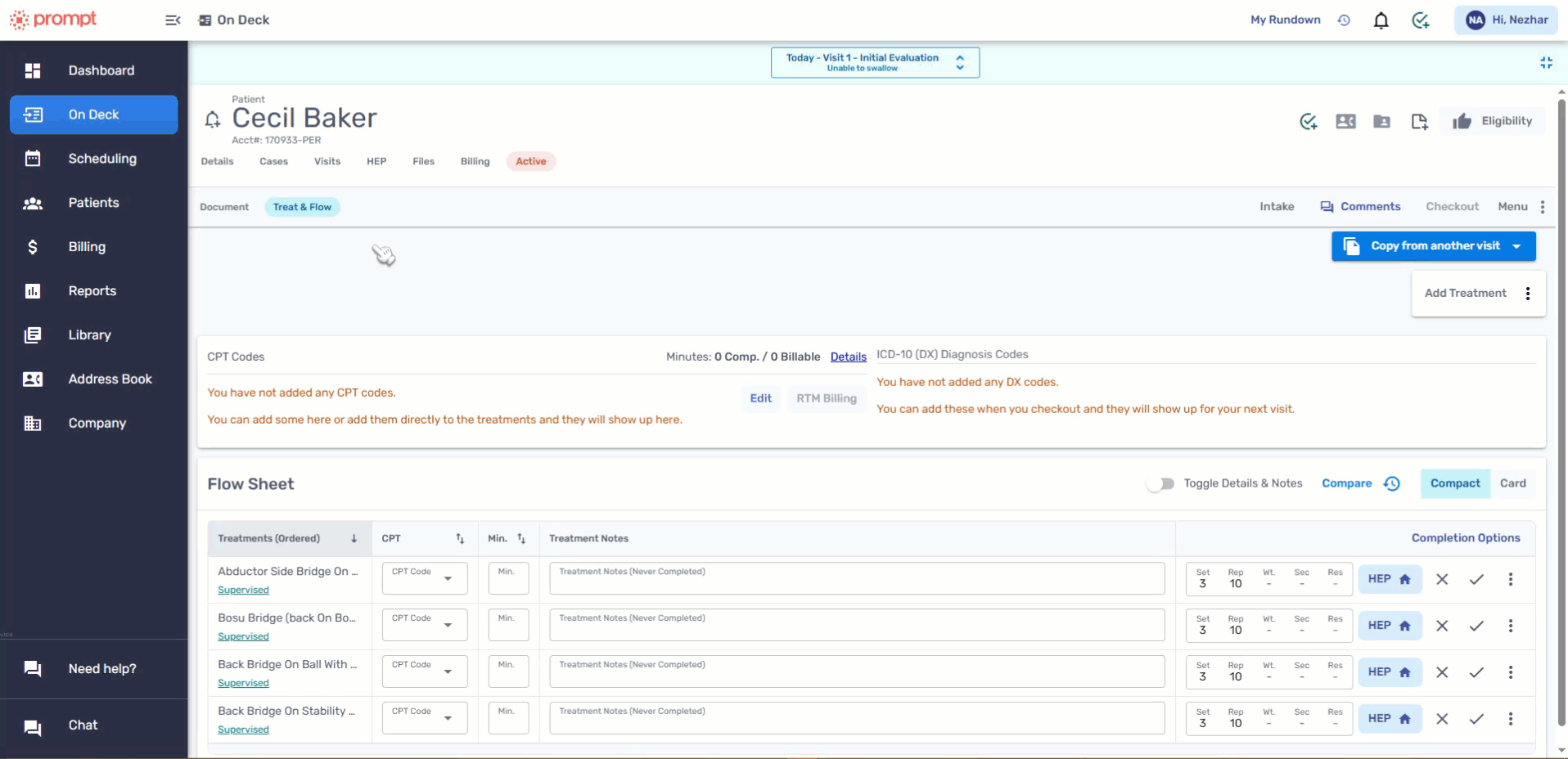 With the latest integration with Prompt, providers now have the option to directly build the home exercise program directly from Prompt's flow sheet.