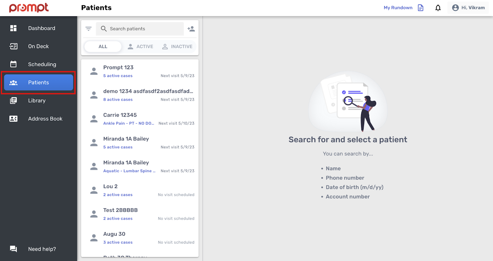 To track your RTM activity, you should view or make changes to the patient's HEP in PT Wired since the RTM Timer is not yet integrated with Prompt.