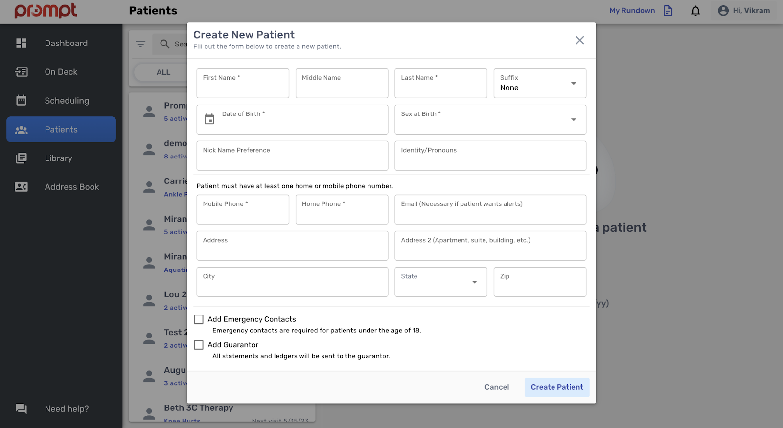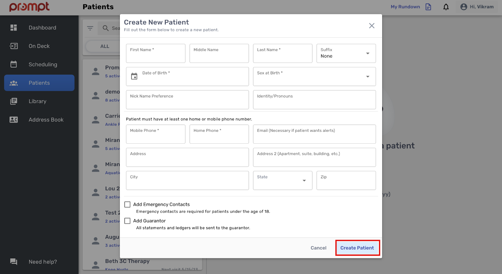 Fill out the required information and once you’re done, click the “Create Patient” button on the lower right of the pop-up.