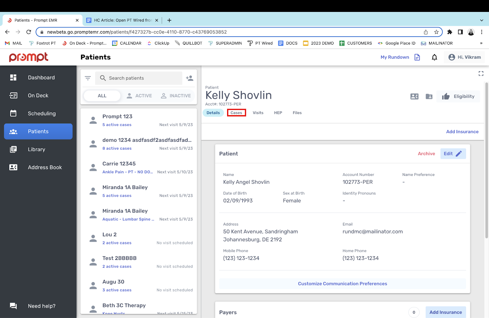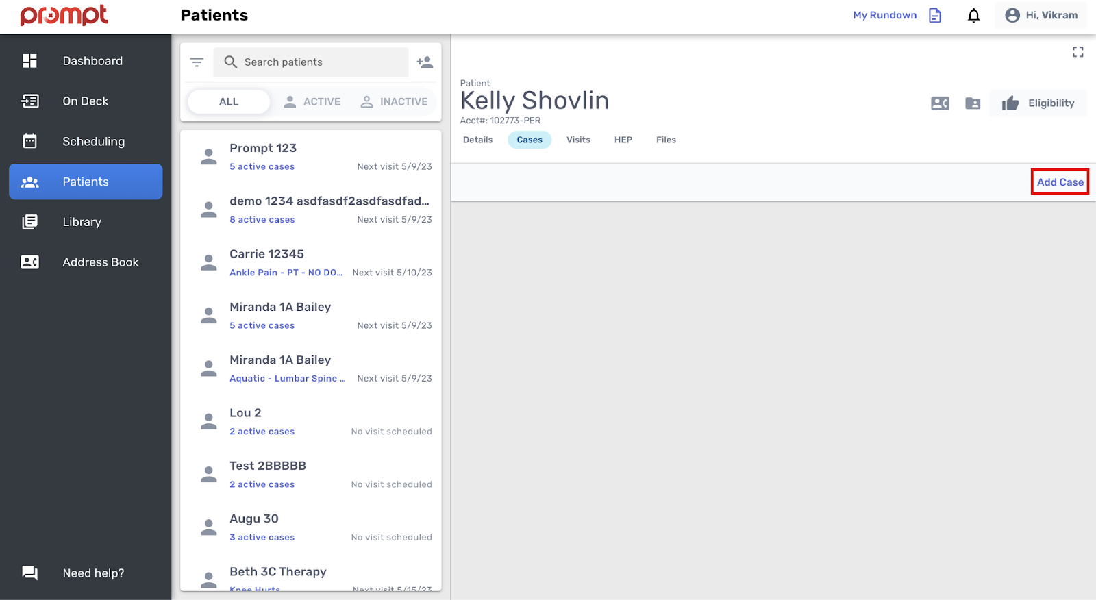5.) You’ll be navigated to the patient’s profile - from here, navigate to the “Cases” tab to see your patient’s current cases, or to create a new one by clicking the “Add Case” button on the right of the patient’s profile.