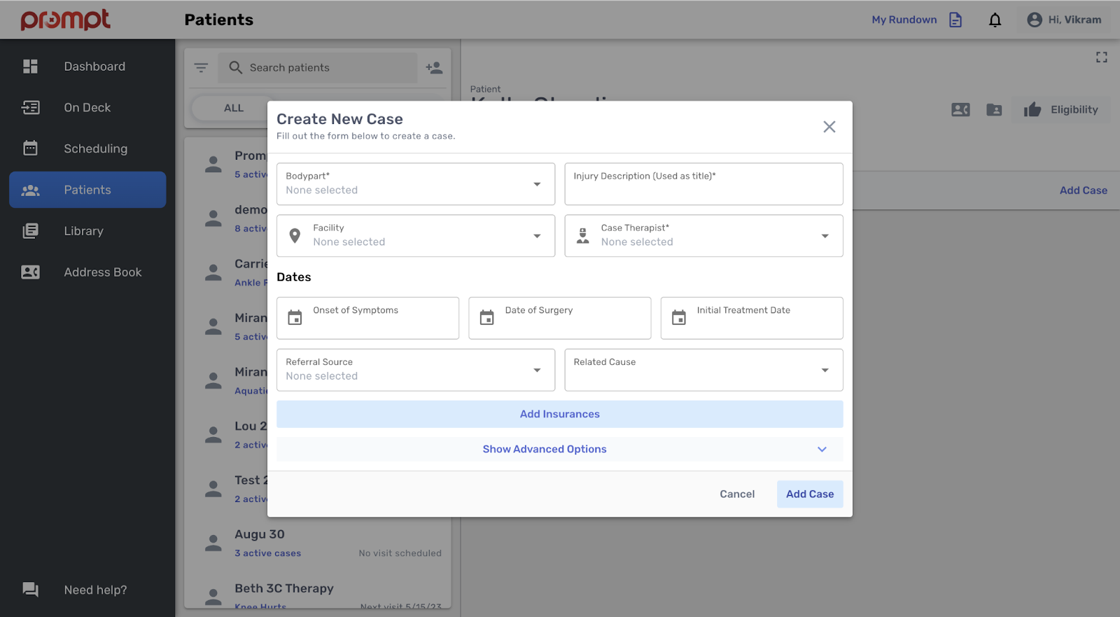 6.) A “Create New Case” pop-up will appear. Fill out the required information for your patient and click the “Add Case” button at the bottom right of the pop-up.
