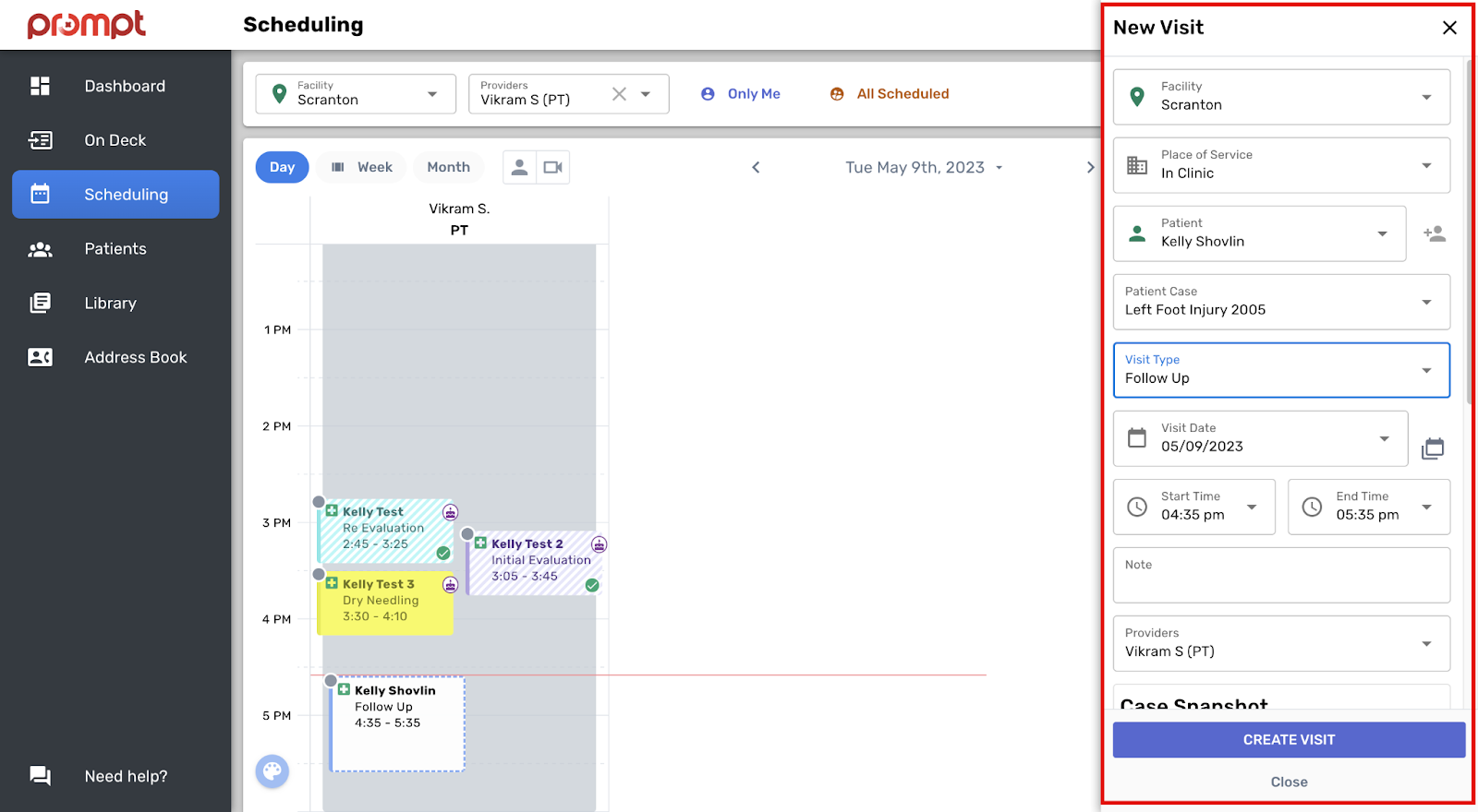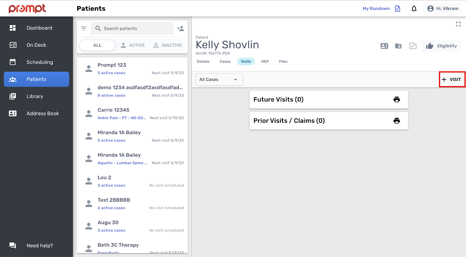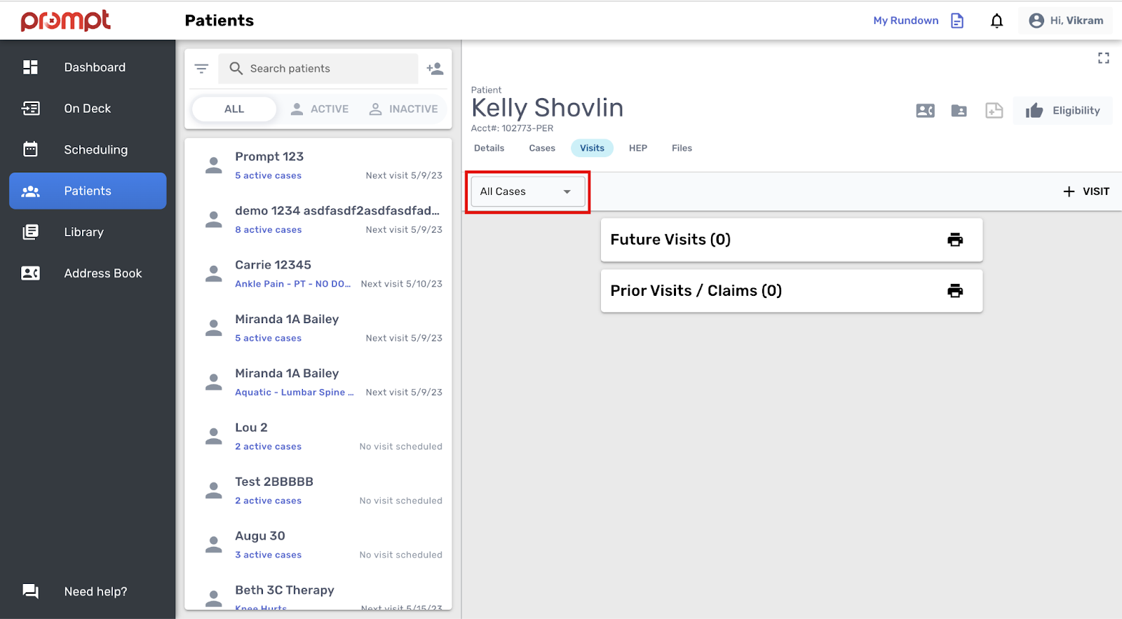 You’ll also be able to filter through cases using the "All Cases" dropdown menu, just below the "Visits" tab. To add a visit, click the “+Visit” button.