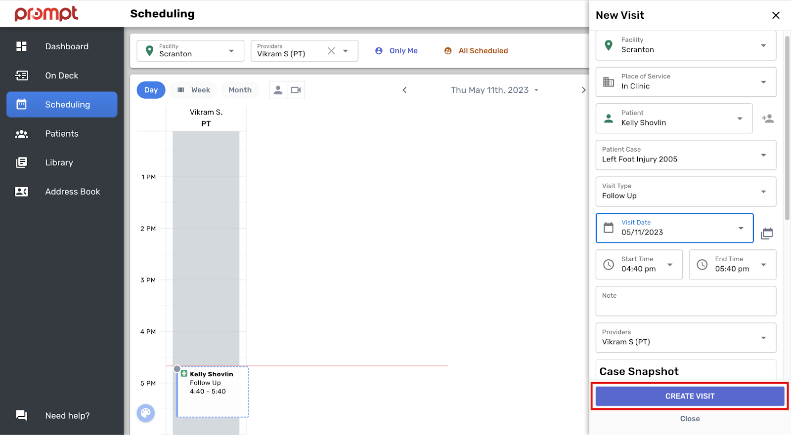 12.) You’ll be able to enter the visit on the green pop-up displayed next.