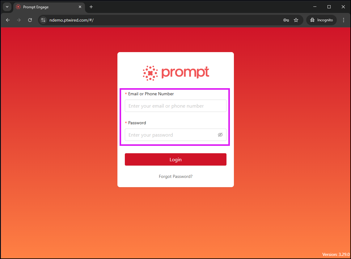 2.) Patients will then be directed to the patient log in page. Fill out your email (username) and password and click the 'Login' button.