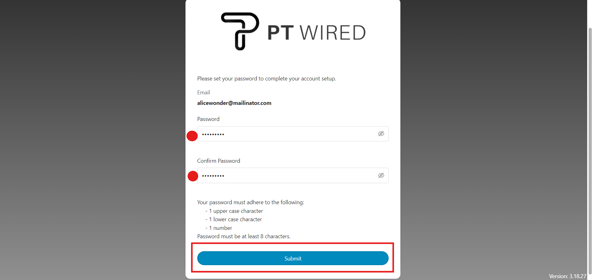4.) Enter your new password, confirm it and click "Submit" at the bottom of the page. You'll now be able to log in using the new password.
