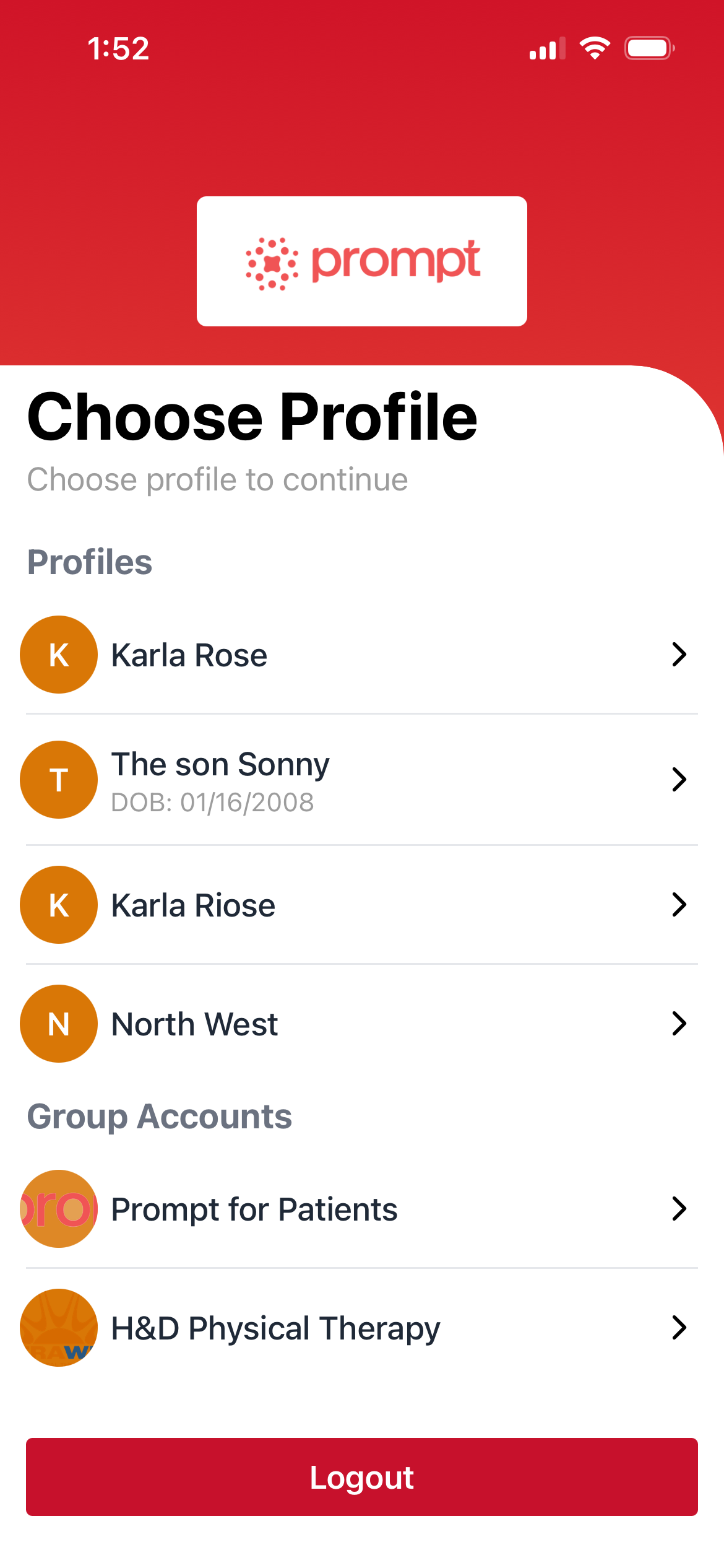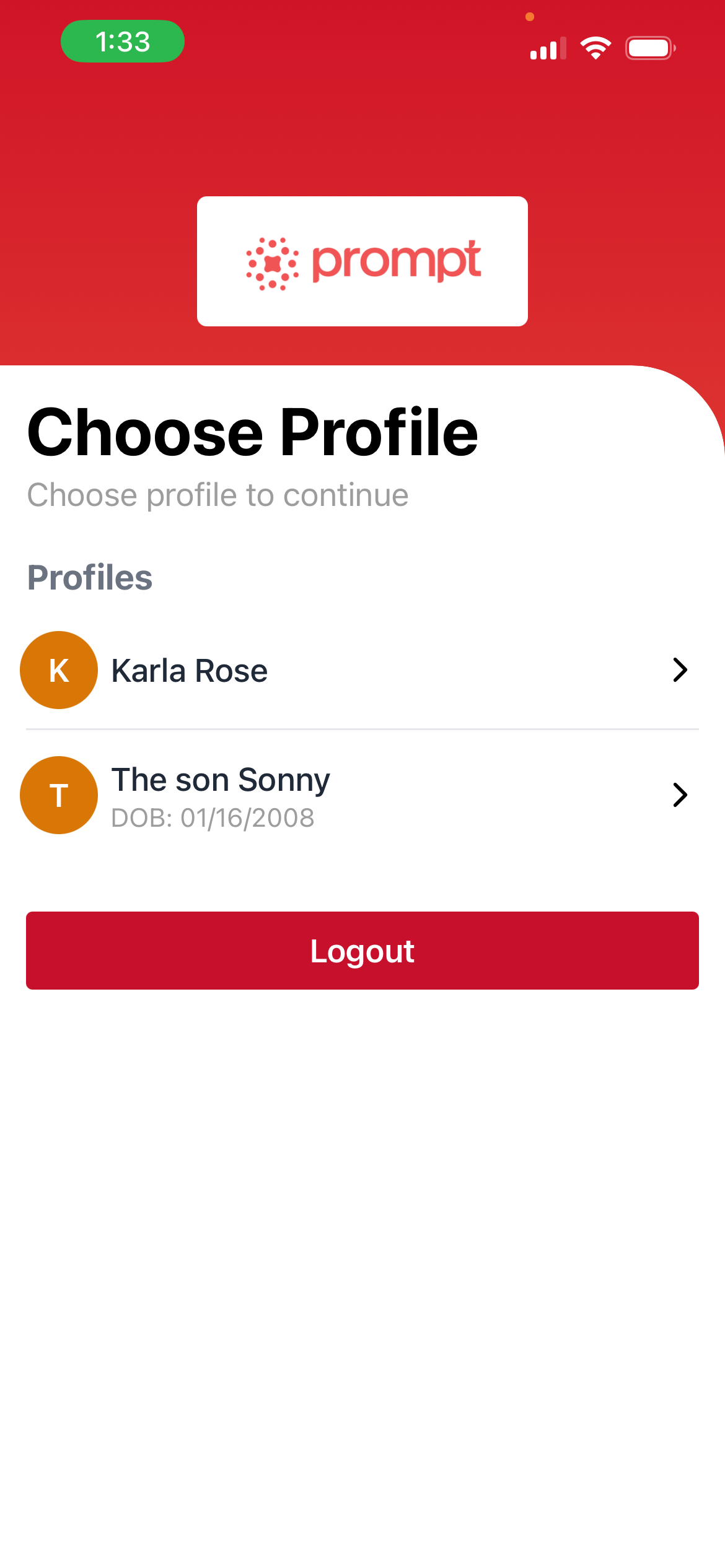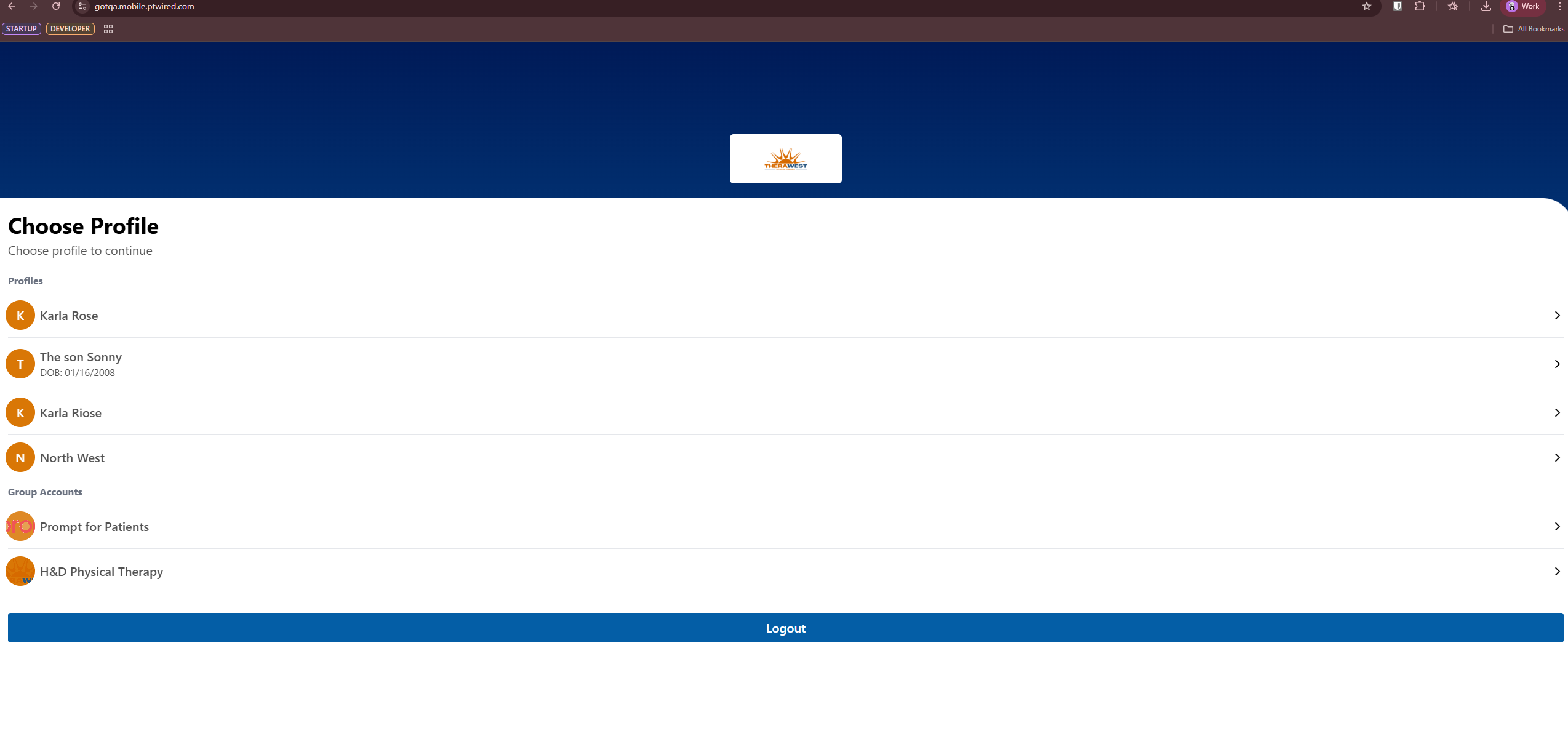 1. When you log in with credentials tied to more than one patient profiles, you’ll see a Profile Selection screen. Each patient profile will be displayed with: