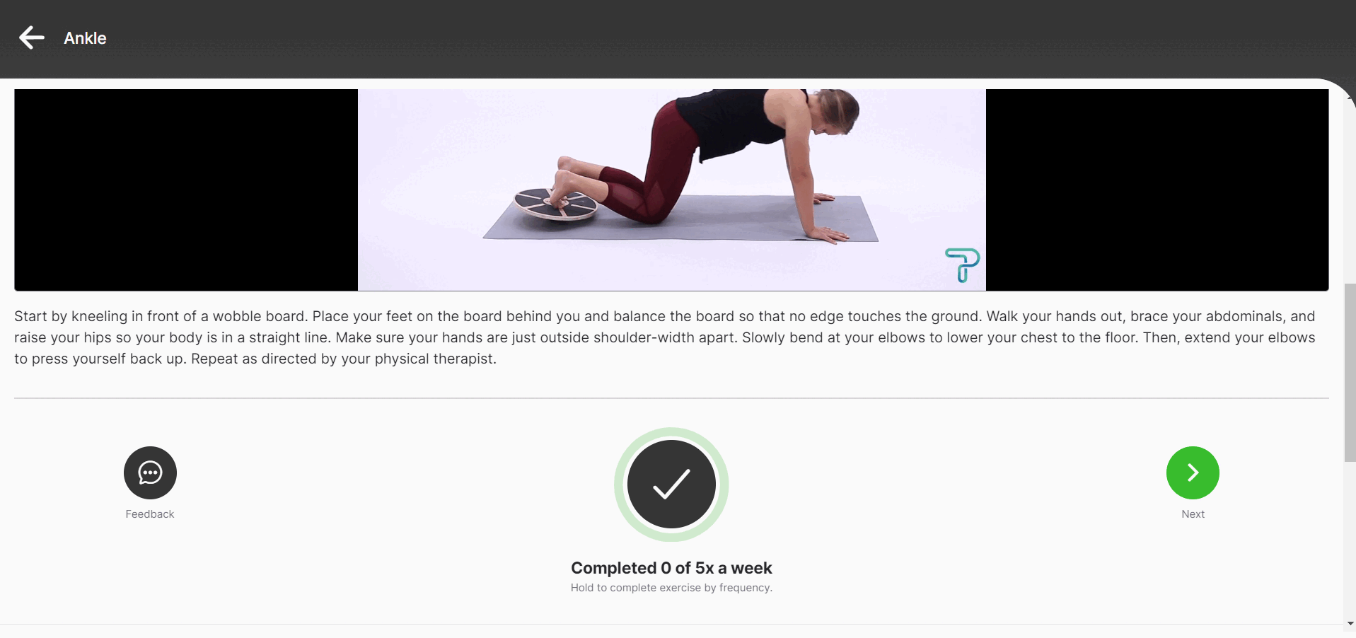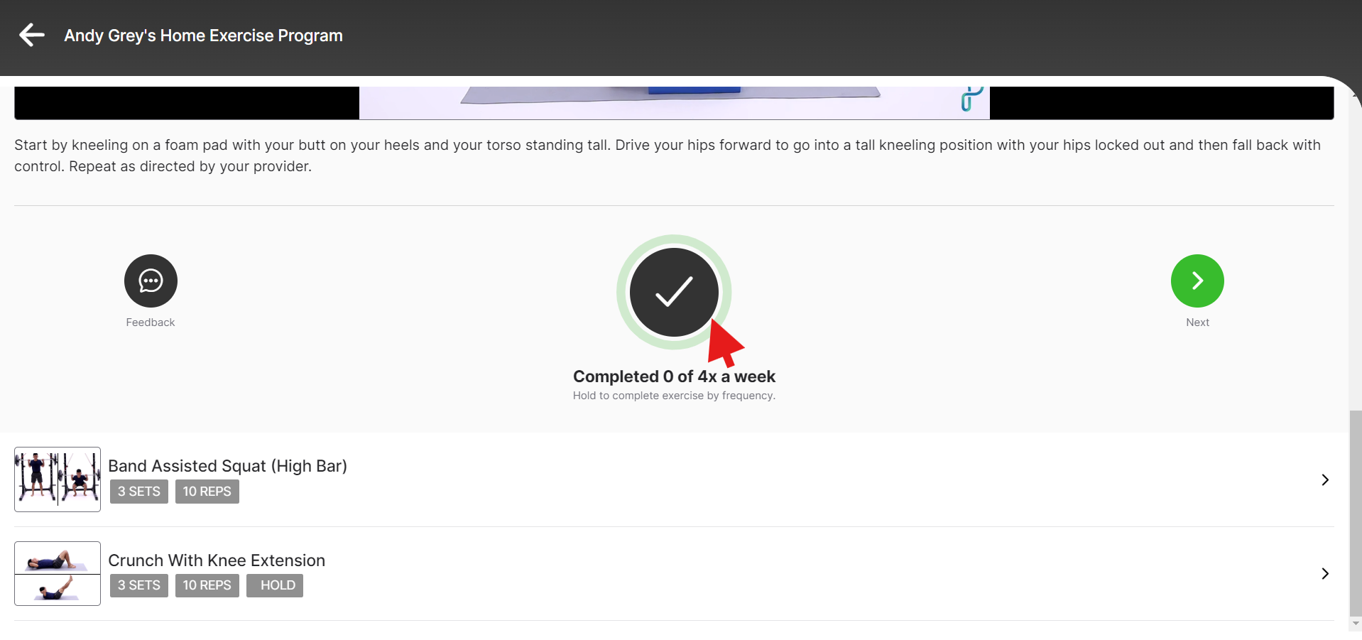 Perform your exercises and mark each exercise once you're finished as "Completed for Today!" by clicking on the check mark indicating that the exercise has been completed for that day.
