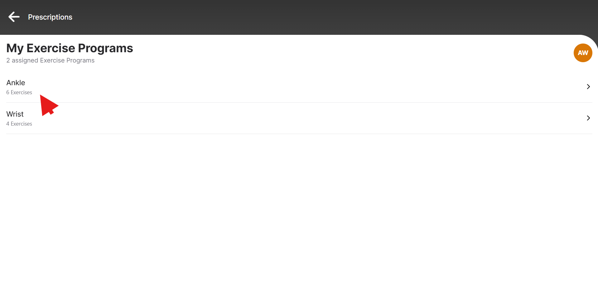 2.) On this page, your assigned prescriptions will be displayed. Click the prescription you'd like to start/continue with.