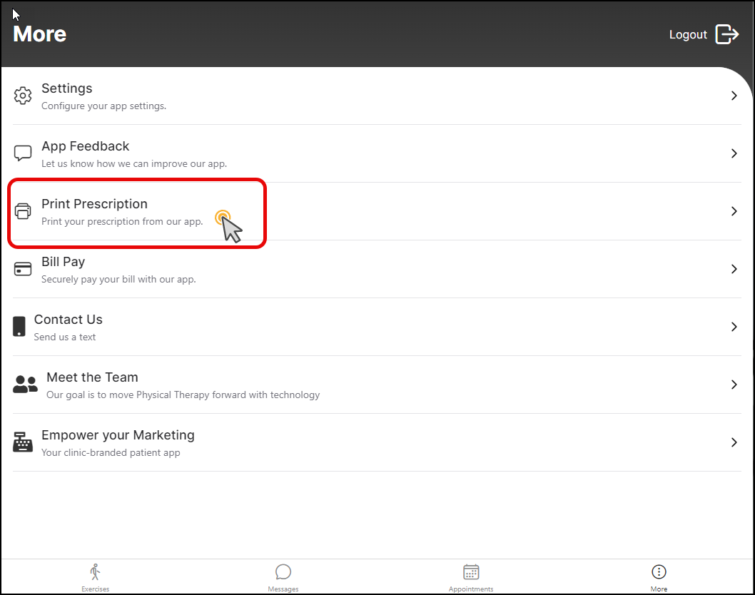 Here's a step by step instructions on how to export your prescription as a PDF or print your home exercise program