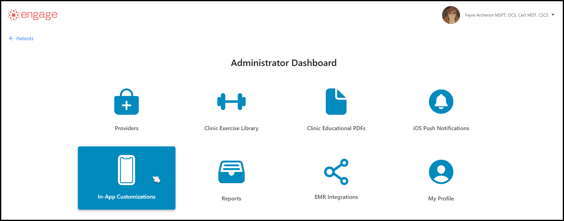 2.) You'll be directed to the Administrator Dashboard, click the 'In-App Customizations' card.