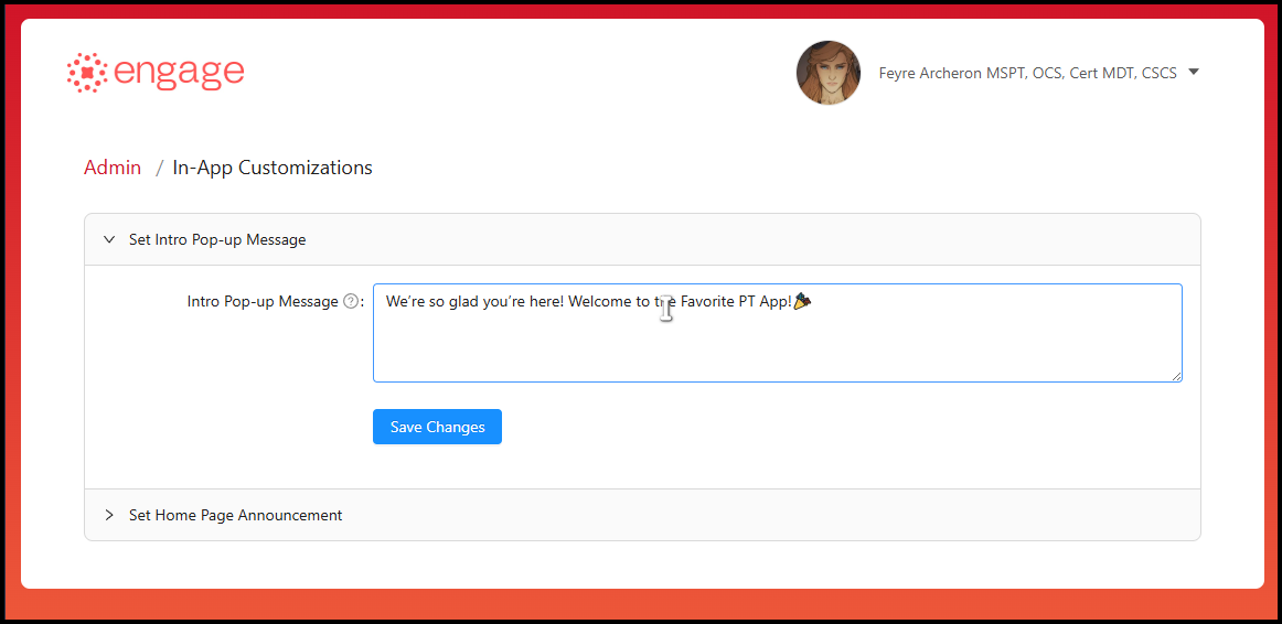 Below is a video tutorial on Clinic Administrators can setup the Intro Pop-up Message