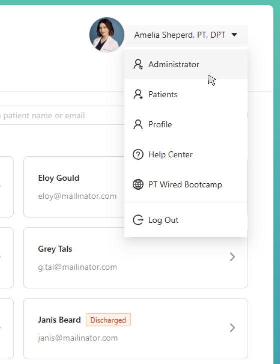 1.) Log in as an admin, then hover over and click your name in the top right corner. From the dropdown menu, click 'Administrator' from the drop-down.
