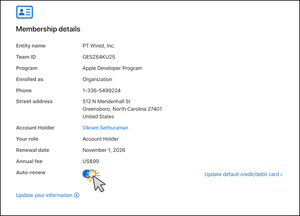 Auto Renewal of Apple Developer Membership