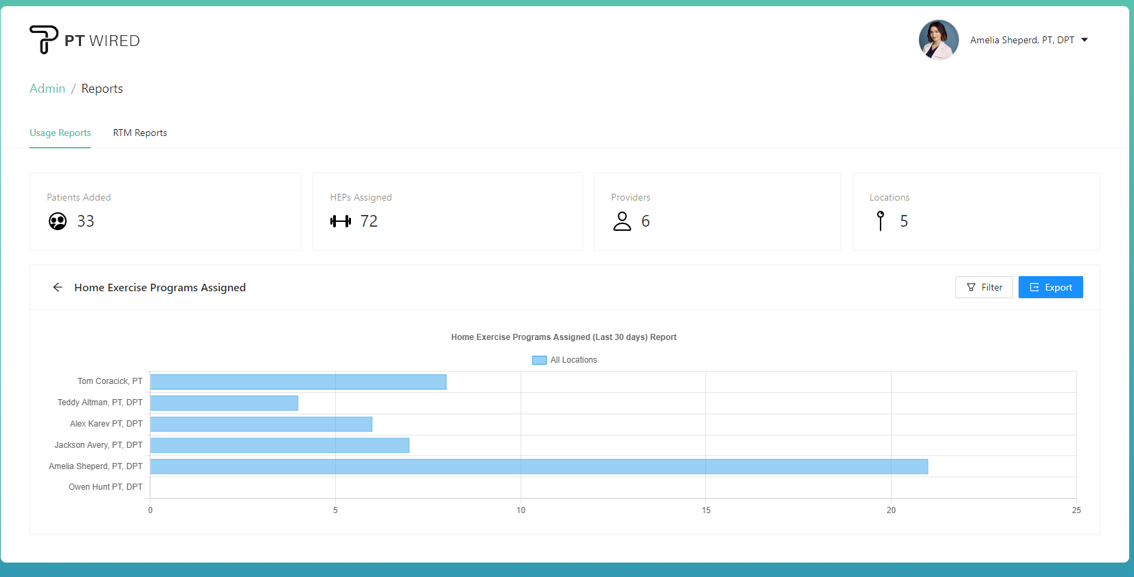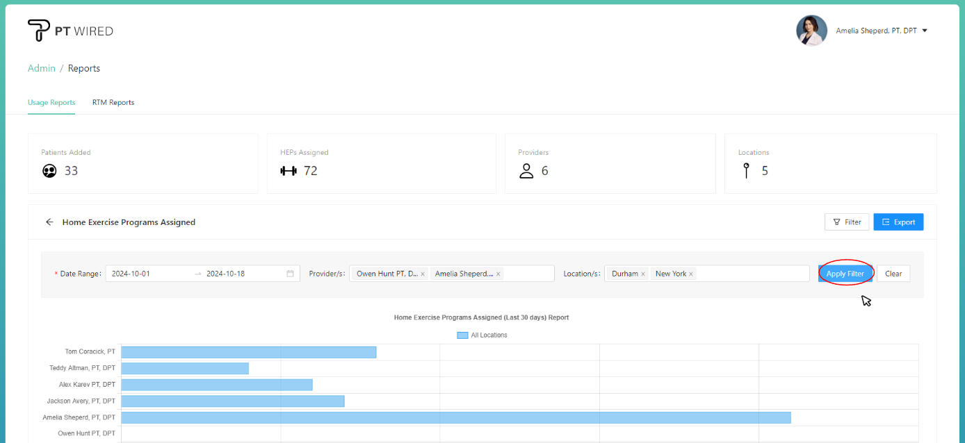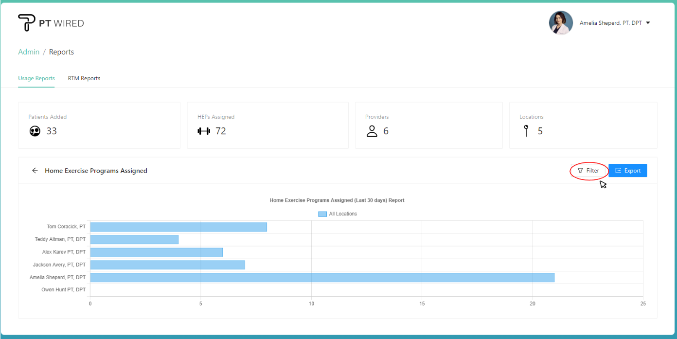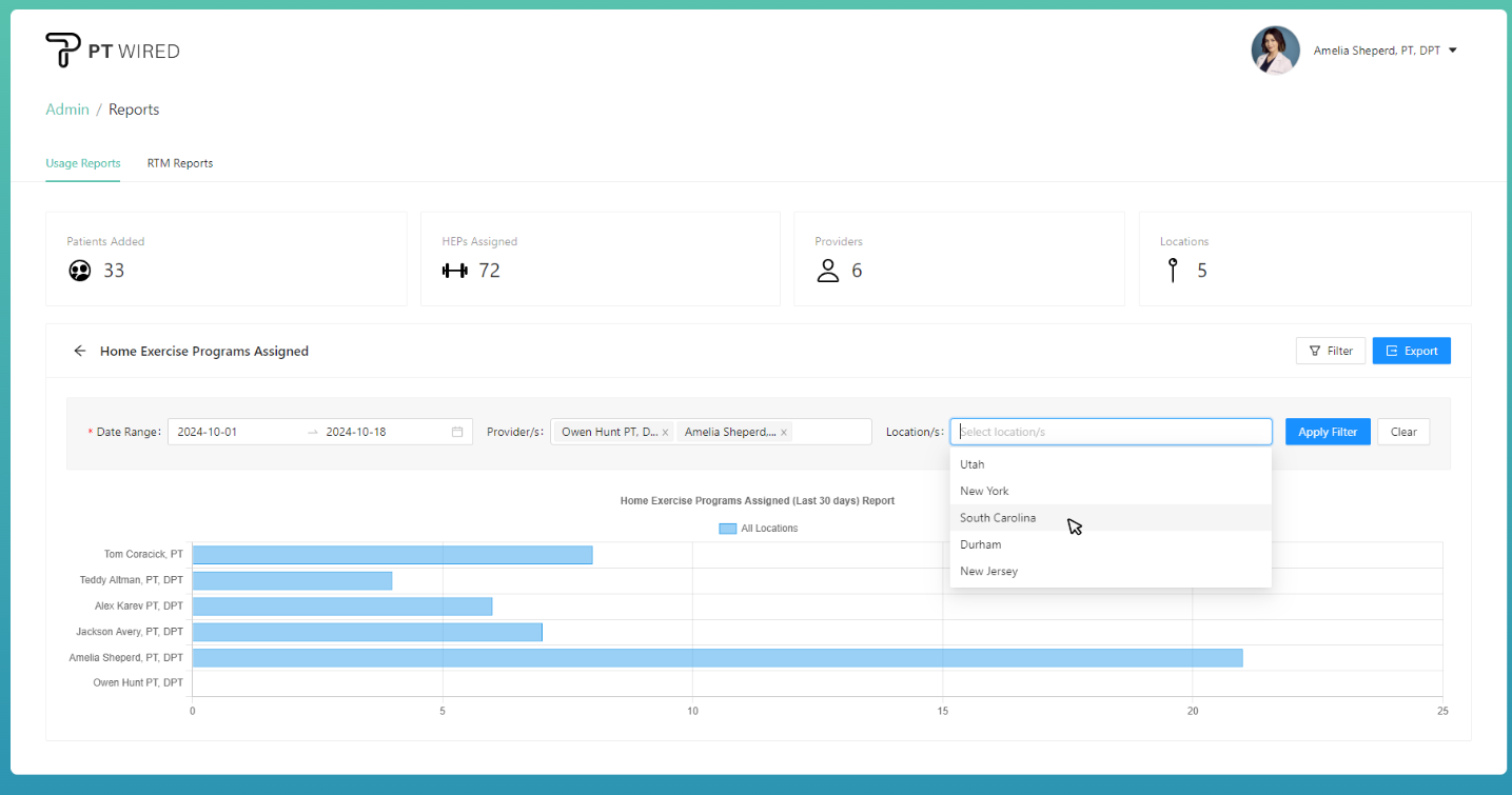 Encouraging patient involvement outside of the clinic is crucial to providing comprehensive care. Our Usage Reports provide insights into the number of Home Exercise Programs (HEPs) created by each provider. This data enables administrators to assess the emphasis on at-home care, identify providers who excel in promoting patient adherence to HEPs, and tailor support or training programs accordingly.