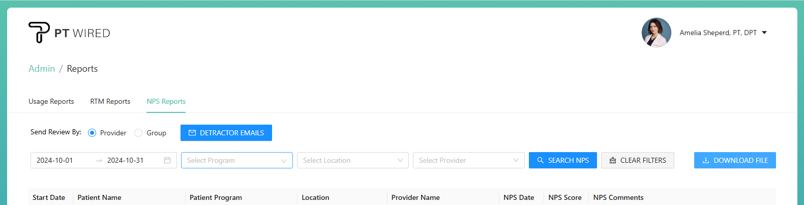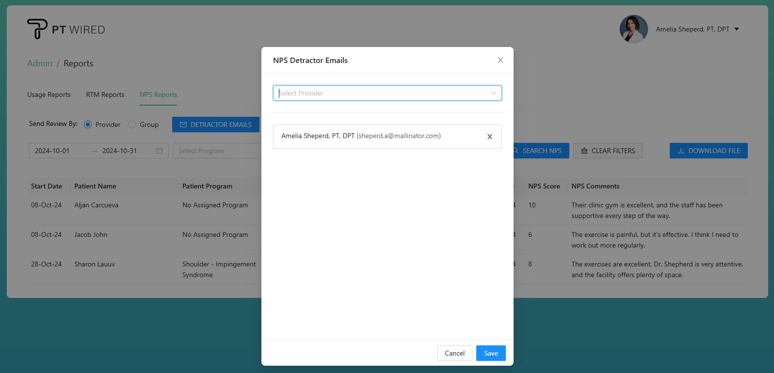 Providers added to the NPS Detractor email notification list would receive an email notification when a patient has submitted an NPS score of 7 and below.