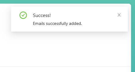 7.) A Success! Emails successfully added pop-up will appear on the top right corner of the screen as soon as the providers' emails have been successfully saved to the Detractor Emails list.