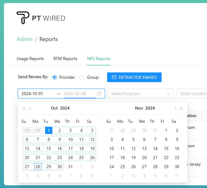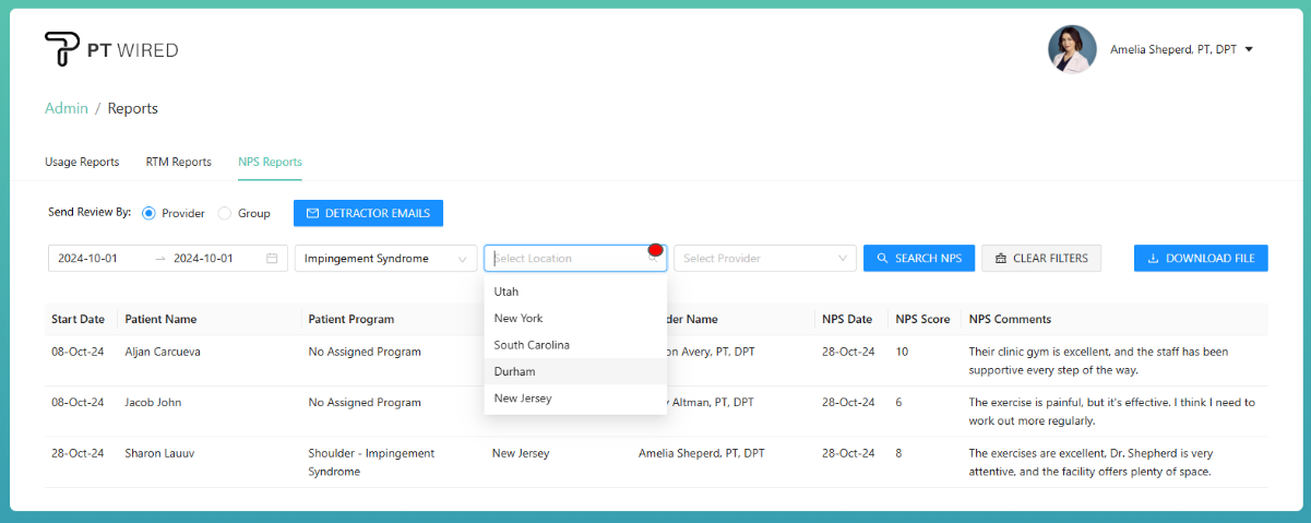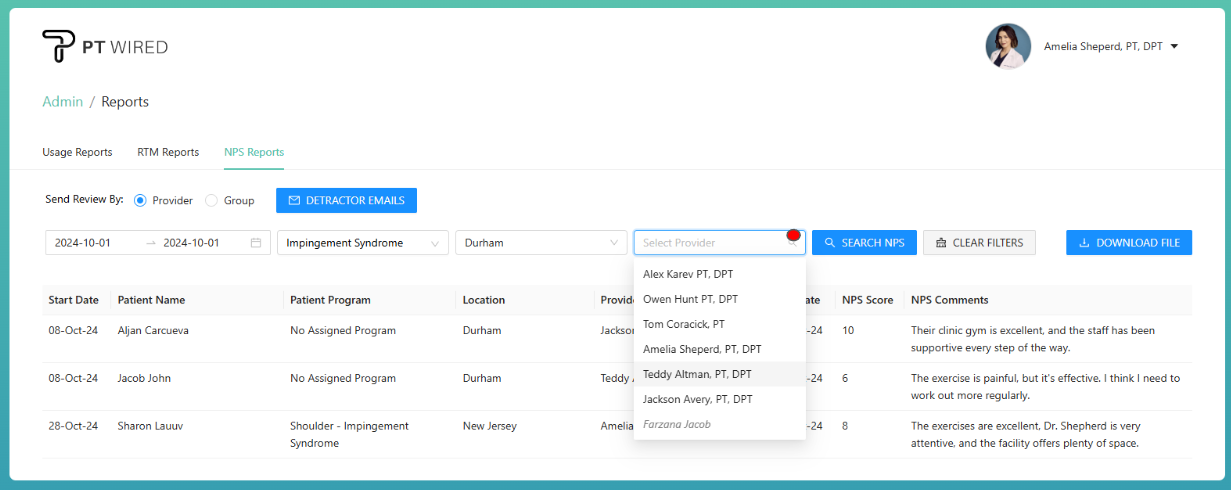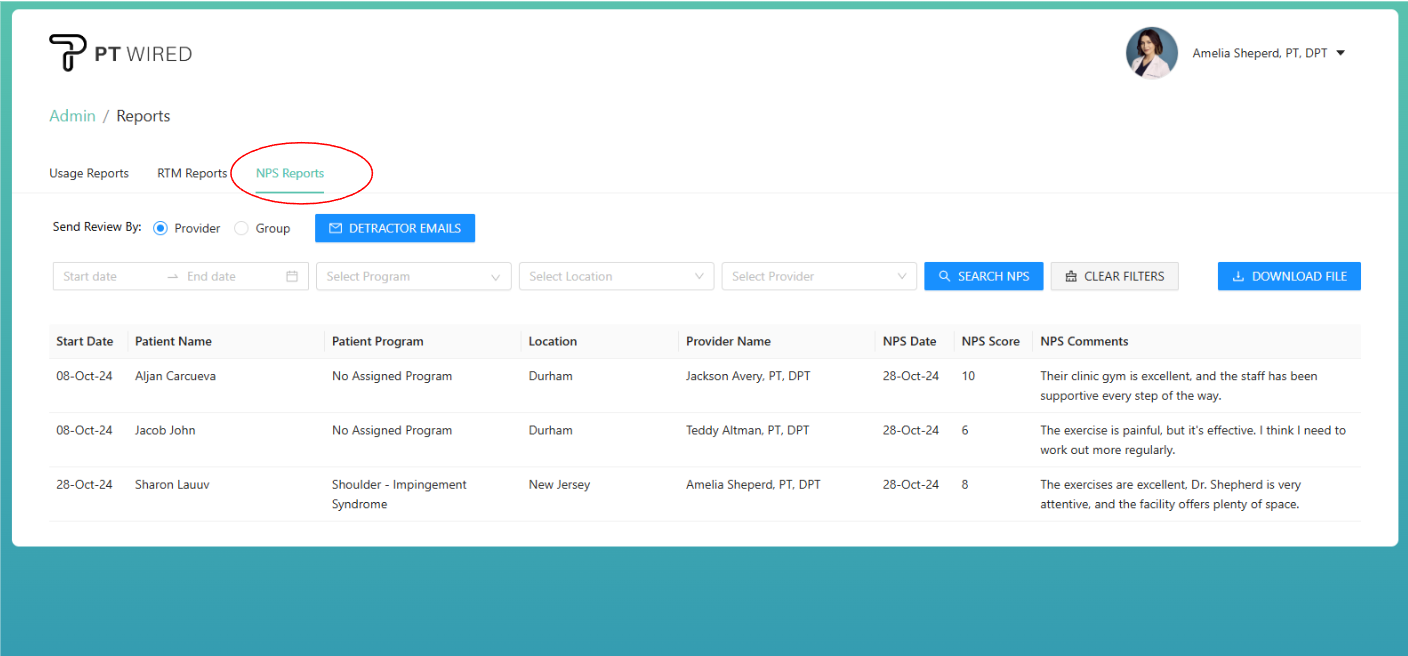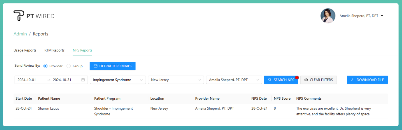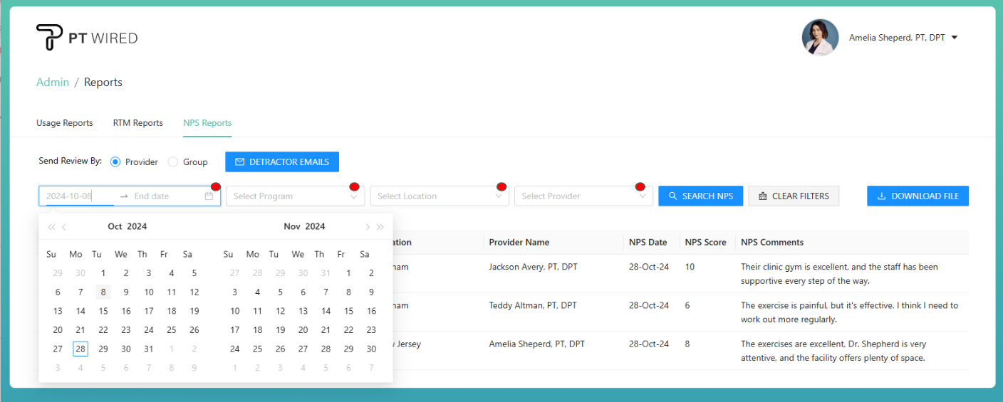 Providers will be able to apply the following filters to narrow down the NPS information: