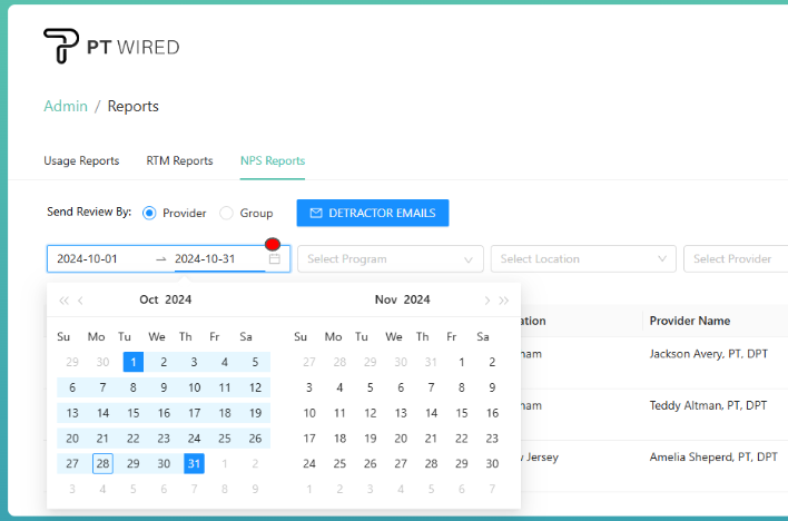 d.) Provider - search for patient NPS information assigned to a specific provider using the "Select Provider" tab, or choose one from the dropdown menu.
