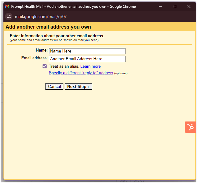 your.name@promptemr.com - Treat as an alias: Make sure this box is checked. This tells Gmail that this address is connected to your main inbox and not a separate account.