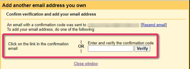 - Or, copy the confirmation code from the email and paste it into the pop-up window you left open.