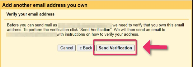 The final step is to verify the alias. Google sends a confirmation link to your main email address to ensure you have access.