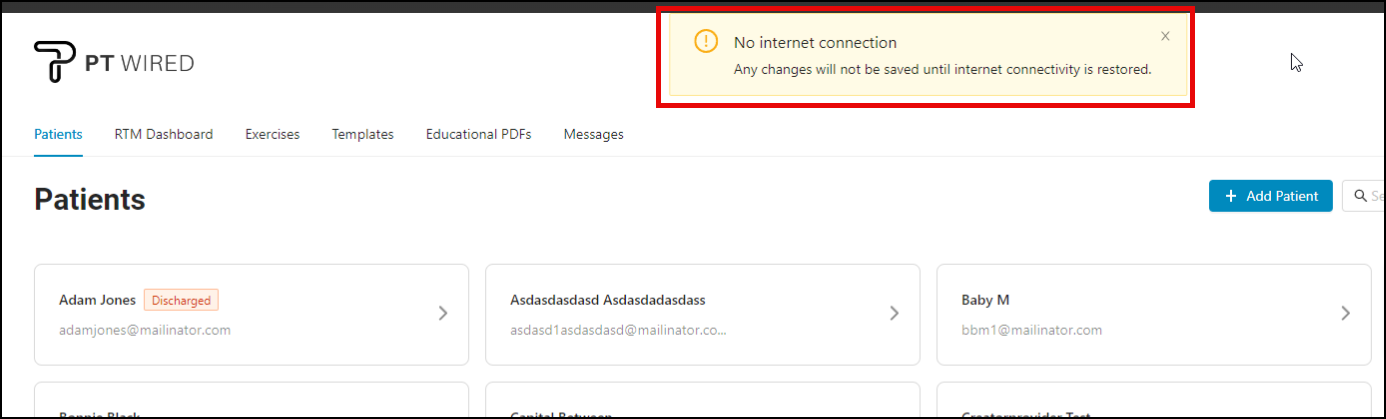 If a provider has poor network connection, a banner will pop-up notifying them of this.