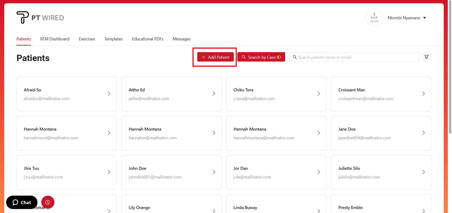 1.) From the patient's page, navigate to the 'Add Patient' button.